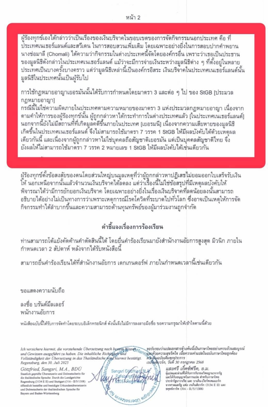 เขาเอาคำสั่งไม่ฟ้องคดียักยอกที่คุณยุไปร้องพระคึกฤทธิ์ที่เยอรมัน ซึ่งคําสั่งไม่ฟ้องมีถึง 2 หน้า แต่เวลาเอาขึ้นจอ เอาขึ้นแค่หน้าเดียวและส่วนเดียว หน้าสองคือส่วนที่บอกว่าที่สั่งไม่ฟ้องเพราะว่าคดีไม่อยู่ในเขตอํานาจศาลเยอรมัน อีกทั้ง เป็นพลเมืองไทยไม่สามารถใช้กฎหมายเยอรมันบังคับได้ ทนายคนนี้กลับไม่เอาขึ้น แต่กลับกล่าวหาว่าพวกเราขาดจริยธรรมในวิชาชีพ งานนี้สงสัยคุณต้องยาวแล้วล่ะ คุณทนายนันนท เห็นถามหาหลักฐาน ก็คุณไม่ยอมอ่านสองหน้า นี่เอามาให้จนครบแล้ว