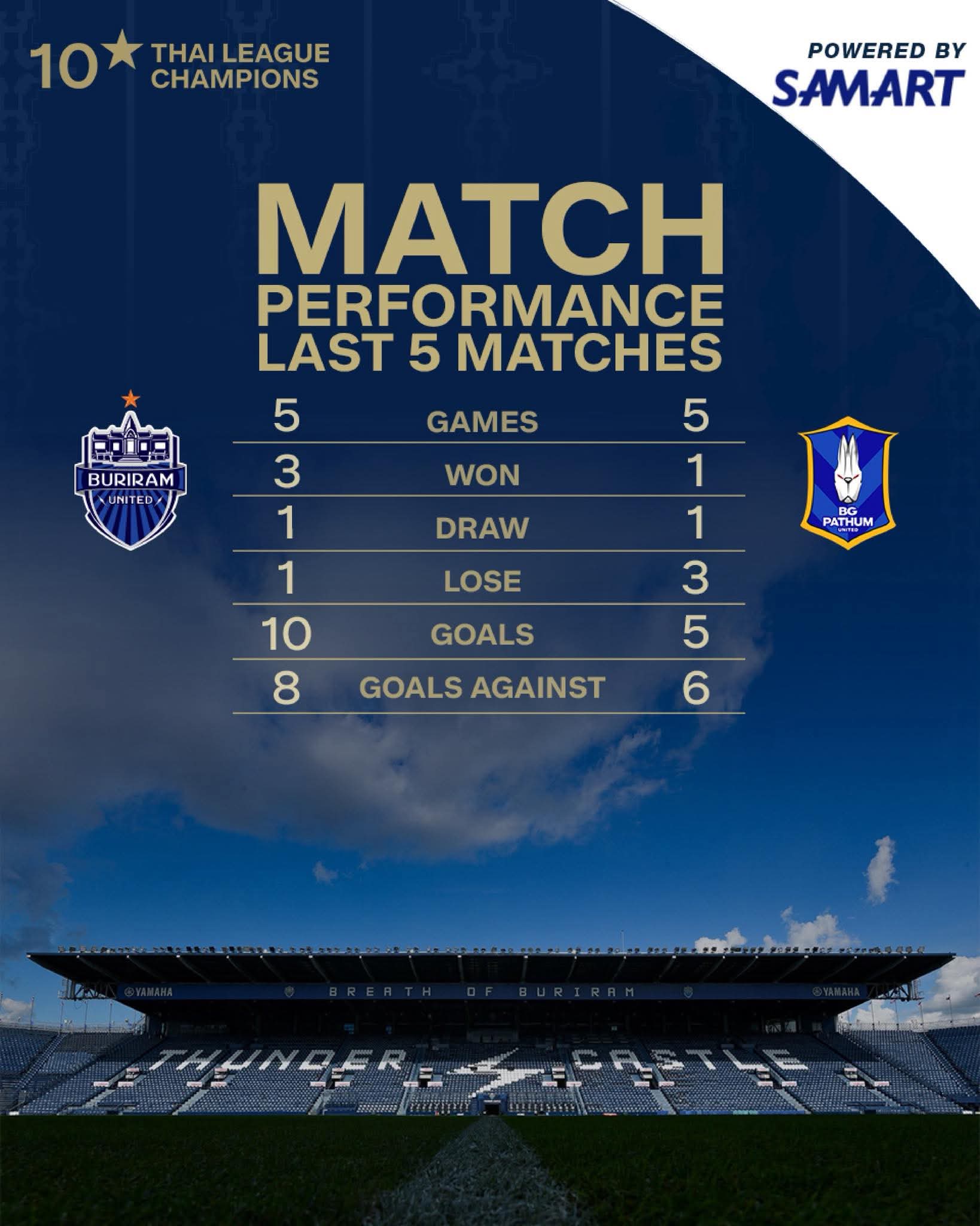 BG ได้ช่วยให้ผู้เช่าสนามอย่าง BU มีคะแนนห่างกันแค่ 3 แต้มกับ บุรีรัมย์