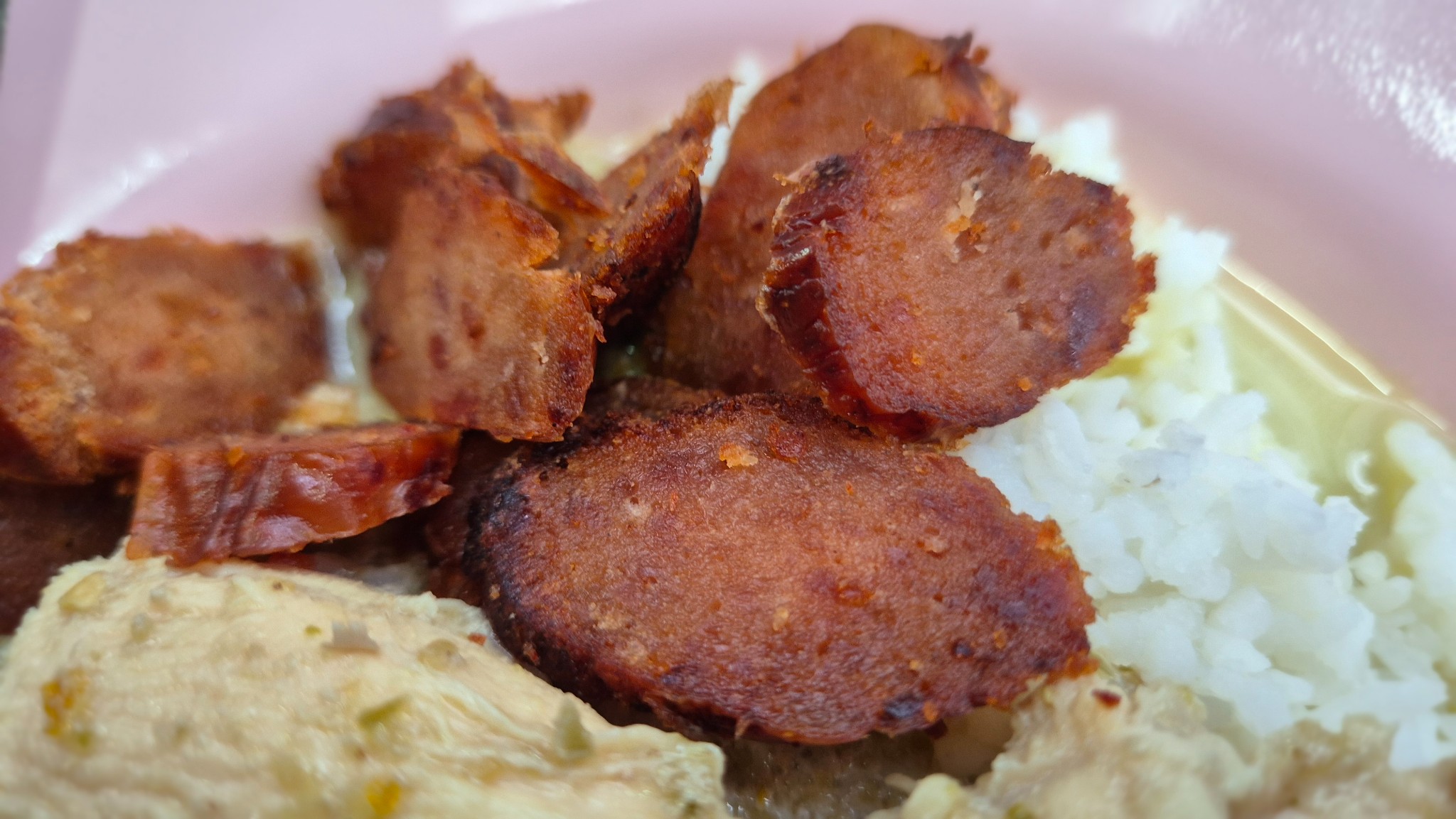 มันแหยะๆยืดๆ และไม่มีความหวาน ส่วนหมูแดงใช้ได้ ไข่อร่อย ข้าวไม่ร้อน น้ำซุปฟรี แต่กุงเชียงของโปรด มีสองชิ้น นั่นแข็งดังหินผากาดาบ จานนี้ห้าสิบบาท ขอไม่แจ้งพิกัดว่าริมถนนแถวห้างพาราไดซ์ ช่วยแนะนำข้าวหม