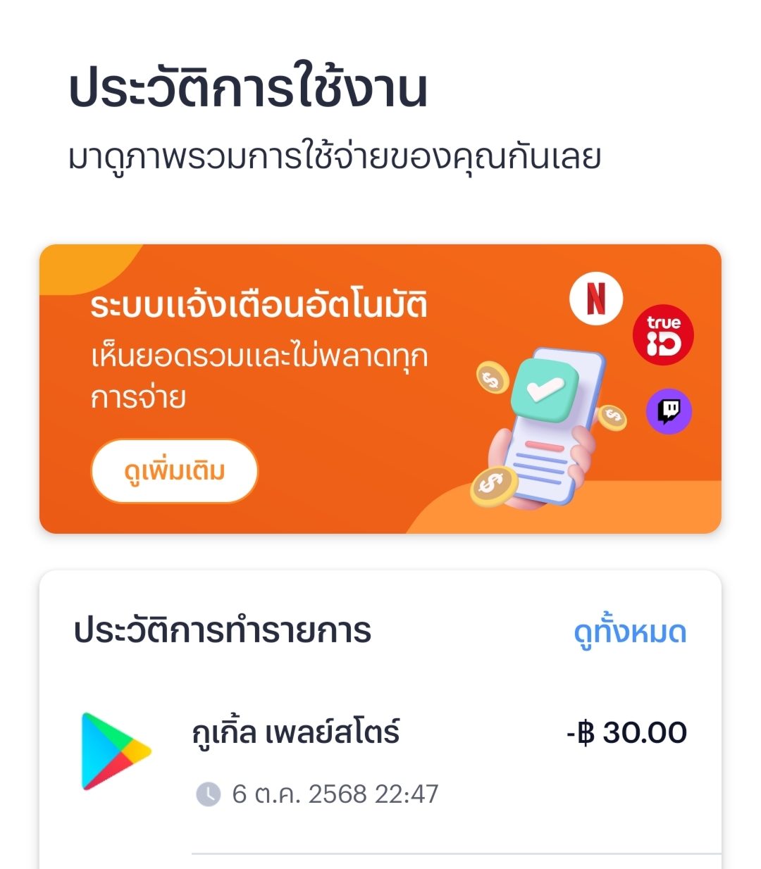 โดนหักเงินอัตโนมัติผ่านทูมันนี่วอเลท มา10เดือนละ