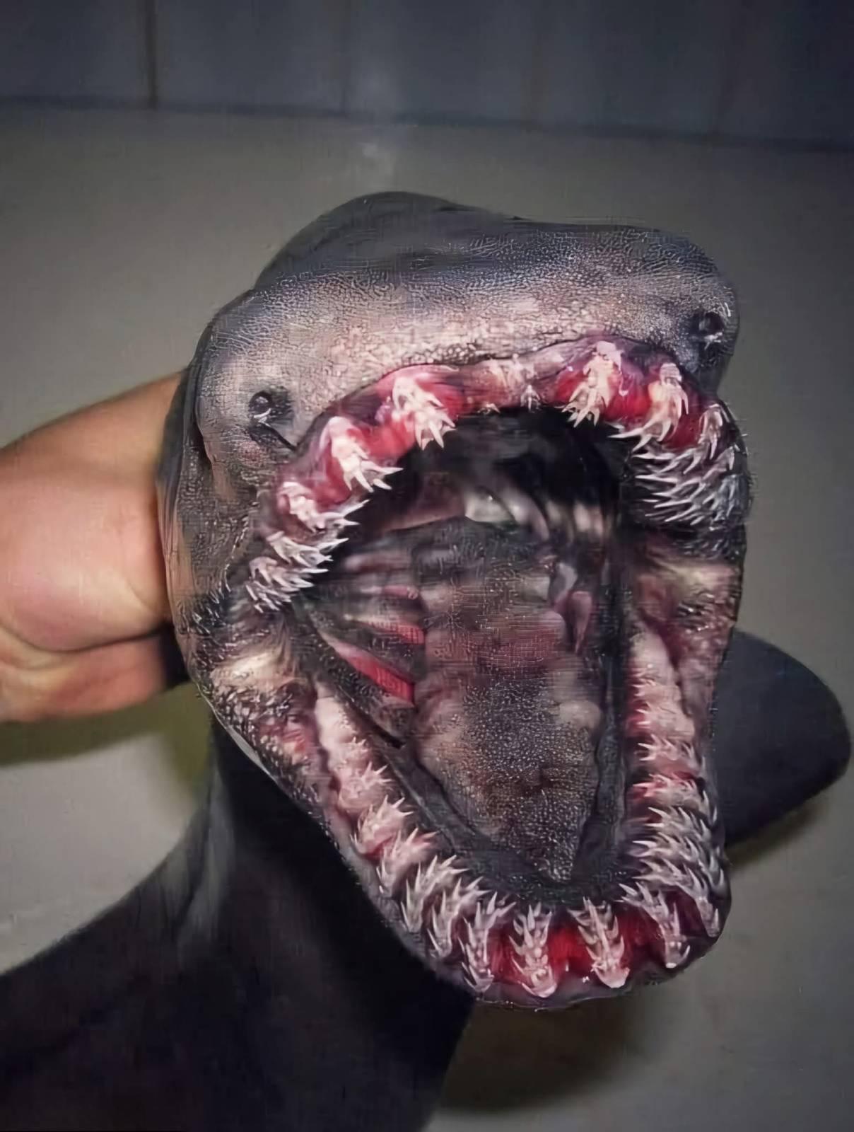"ปลาฉลามครุย" ที่ถูกจับได้โดยชาวประมง ฉลามน้ำลึกที่หายาก "ซากดึกดำบรรพ์มีชีวิต" 🦈