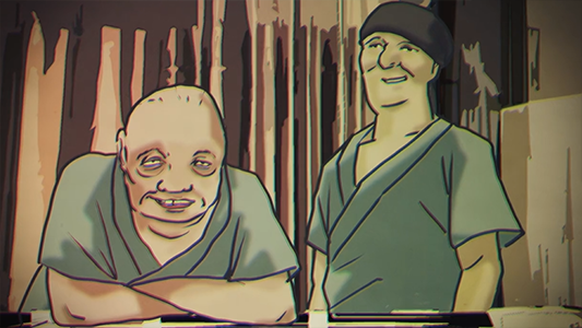 เมื่อเขาได้ออกไปโรงพยาบาล แล้วเห็นเงาของ 2 คนนั้น จึงทำท่าบันไซส่งท้าย