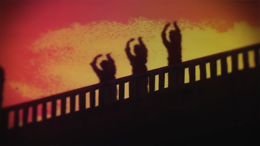 เพื่อน 2 คนได้ชวนไปบนดาดฟ้า สอนให้เขาทำท่า "บันไซ" เพื่อจะได้ขับไล่สิ่งชั่วร้ายออกไป