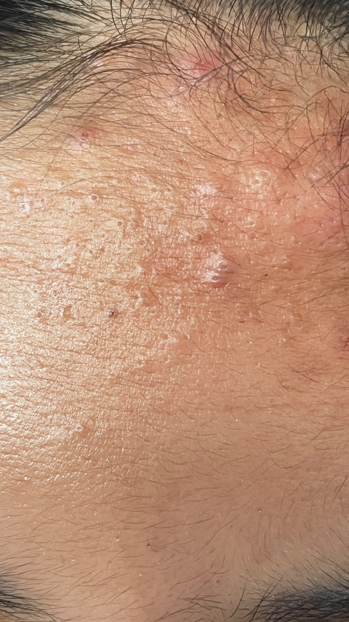ตอนแรกมันเป็นแค่ตรงหน้าผากค่ะ แล้วมันก็ลามมาเรื่อยๆถึงประมาณจมูกแล้วก็หน้าแก้ม พี่ๆคะอันนี้มันเป็นอะไรหรอคะ มันใช่สิวไหม หรือว่าเป็นโรคอะไร ช่วยหนูด้วยค่า😭