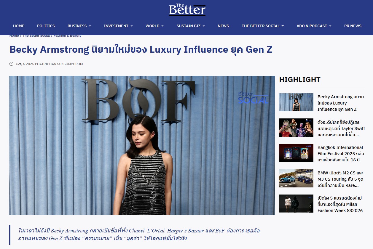 Becky Armstrong จึงไม่ใช่แค่คนดังรุ่นใหม่ที่แบรนด์อยากได้มาใส่ชุด แต่คือกรณีศึกษาที่สะท้อนว่า “แฟชั่นยุคนี้เลือกคนที่ ‘เล่าเรื่องแบรนด์’ ได้จริง และแปลงความหมายให้กลายเป็นมูลค่าได้อย่างทรงพลัง และเธอก็คือหนึ่งในนั้นที่สามารถทำได้