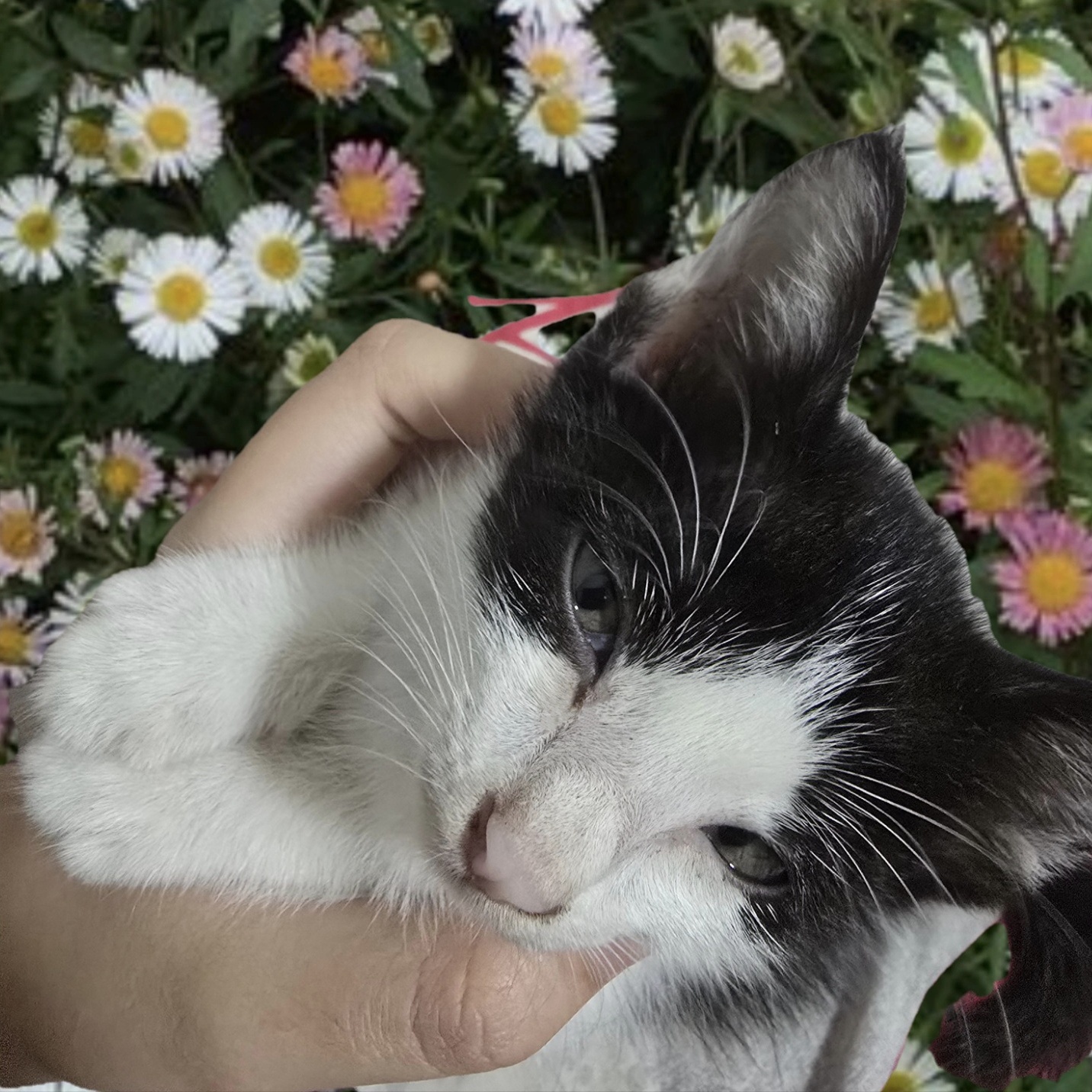 เจอน้องอยู่หลังบ้านมี2ตัวอีกตัวถูกหมาที่บ้านกัดตายไป เลยกลัวว่าอีกตัวถ้าให้น้องอยู่ที่บ้านต่อไปกลัวน้องจะโดนกัด