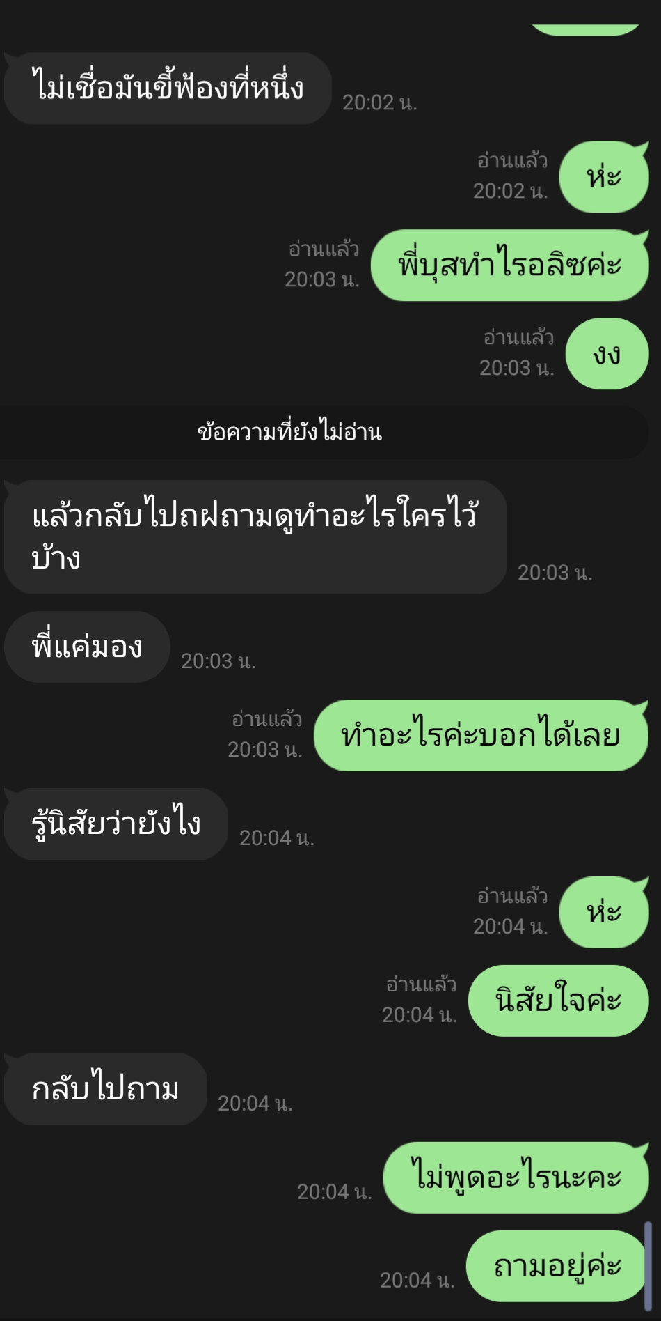 - ล่าสุดเรื่องเกิดขึ้นเมื่อวานทำตึงๆ ใส่เราเราคุยด้วยก็ไม่คุย เราก็นิ่งๆ เฉยๆ จนเลิกงาน เวลาประมาณ 20:40 น. พิมพ์แชทมาว่าเรา