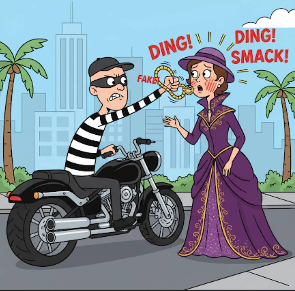 555 โจรบอกทำให้ฉันเสียเวลา เลยขี่รถกลับมาเอาทองฟาดหน้าให้สาใจ ทองเก๊ 5555