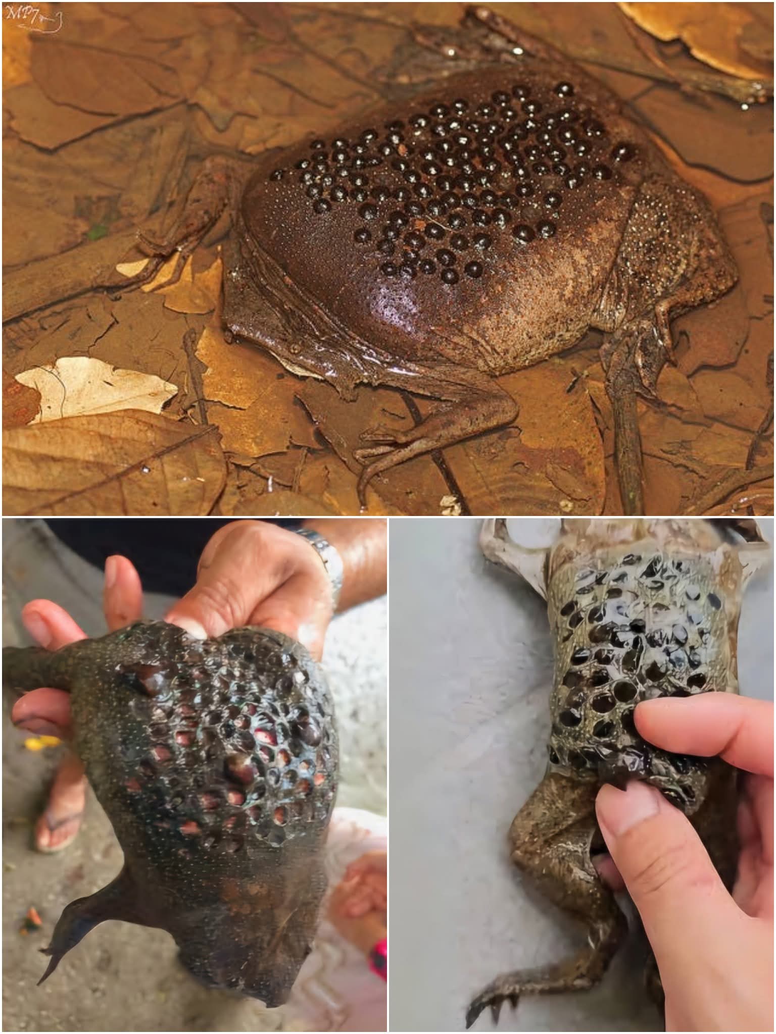"คางคกซูรินาม" ตัวเมียจะเก็บไข่ไว้บนหลัง ไข่จะฝังอยู่ในผิวหนังและฟักตัวเป็นลูกกบขนาดเล็กจากบนหลังของแม่โดยตรง