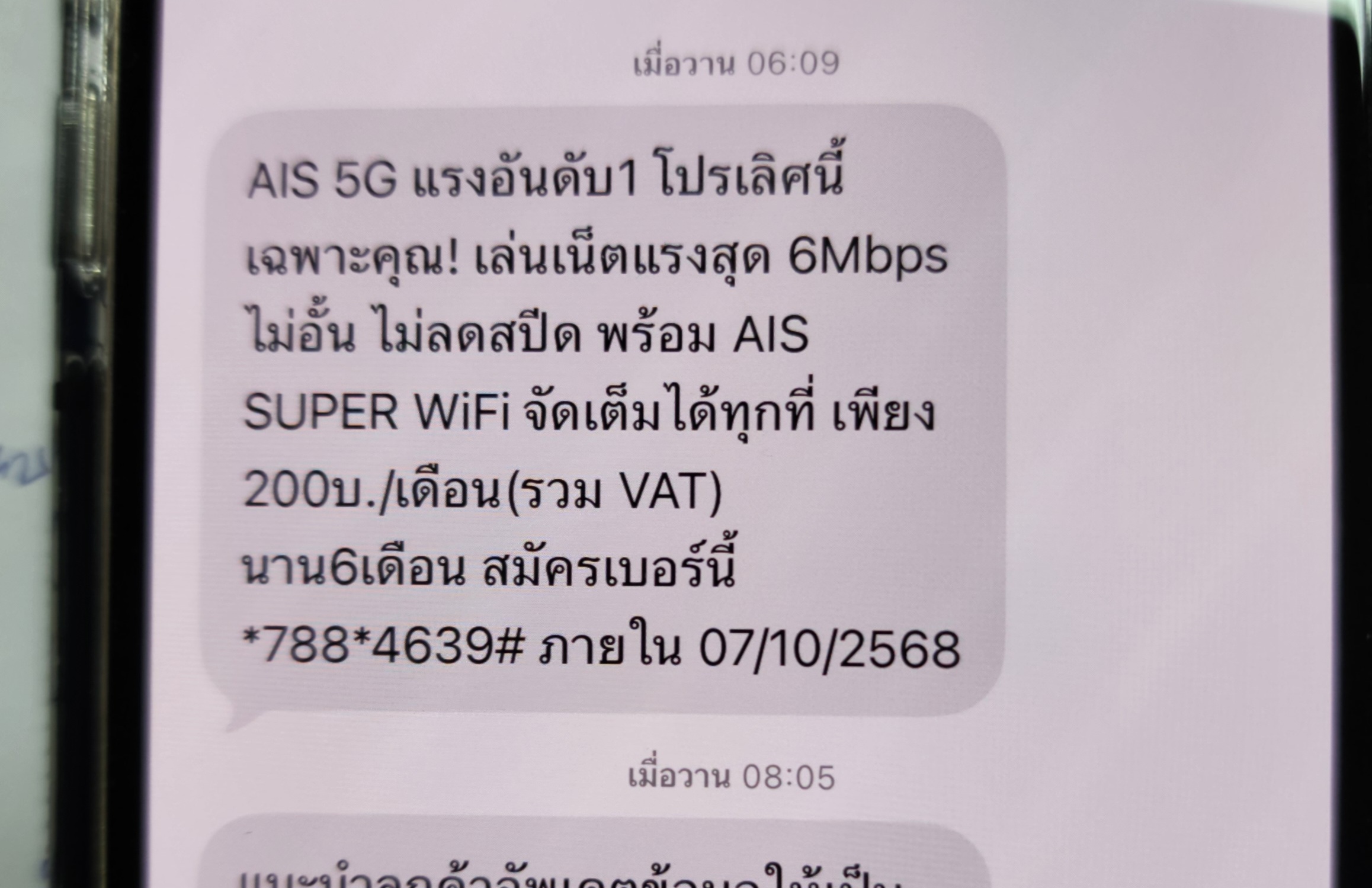 Ais เบอร์นี้เป็นเบอร์เติมเงิน ใช้เป็นเครื่องสำรอง ตอนแรกใช้โปรเหมาเหมา เดือนละ 150 บาท ได้เน็ต 4Mbpsไม่ลดสปีด(4Gเท่านั้น เคยเช็คแล้วโปรนี้ไม่ใช่โปร5G) มี SMS ส่งเข้ามาตามภาพ แนะนำโปร 5G 6Mbps 200 บ./เดือน เข้าใจว่าใช้ 5G ได้ เพราะตัวแรกไม่มี 5Gเลยสมัครไป สรุป ขึ้น 4G ตลอด บ้านอยู่ในเขตอำเภอเมืองมหาสารคาม เลยอยากทราบว่าโปรพวกนี้ เป็นโปร 5G หรือเปล่าหรือใช้ได้แค่ 4G