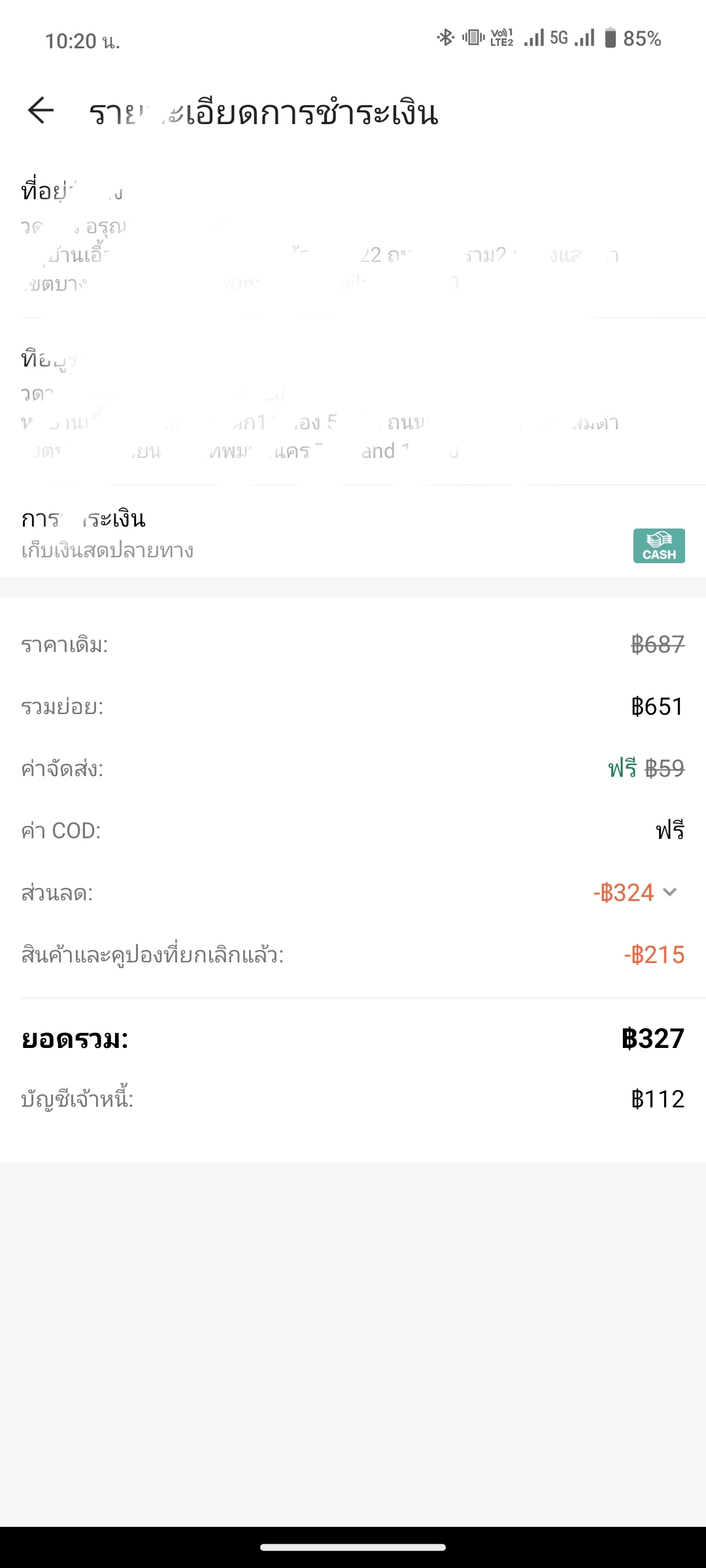 คือเราสั่งของ 3 รายการ ยอดรวม 327 บาท และมียกเลิก 1 รายการประมาณ 215 เราเลือกวิธีเก็บเงินปลายทาง อยากรู้ว่าตอนของมาถึง เราต้องจ่ายยอดไหน พอดีมันยังขึ้นยอดรวม 327 บาทอยู่ค่ะ