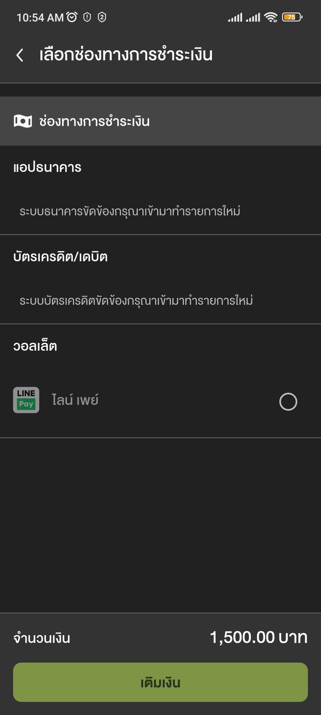 พยายามจะเติมเงินผ่านแอพหลายครั้งแล้วครับ แต่มาหน้านี้ทีไรจะขึ้นแบบนี้ตลอดเลยครับ