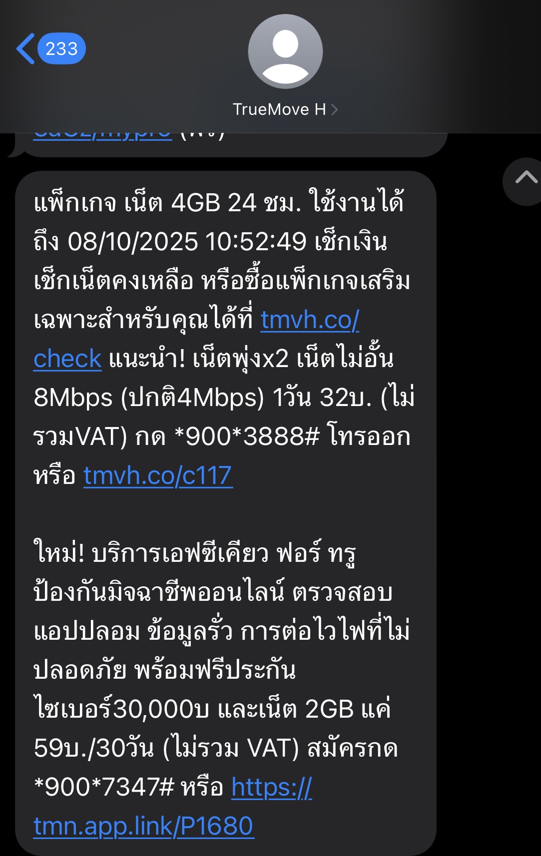 [TRUE] แพ็กเกจทรูหน้าเว็บแจ้ง 24 วัน แต่ซื้อแพคเกจมาแล้วได้แค่ 24 ชั่วโมง