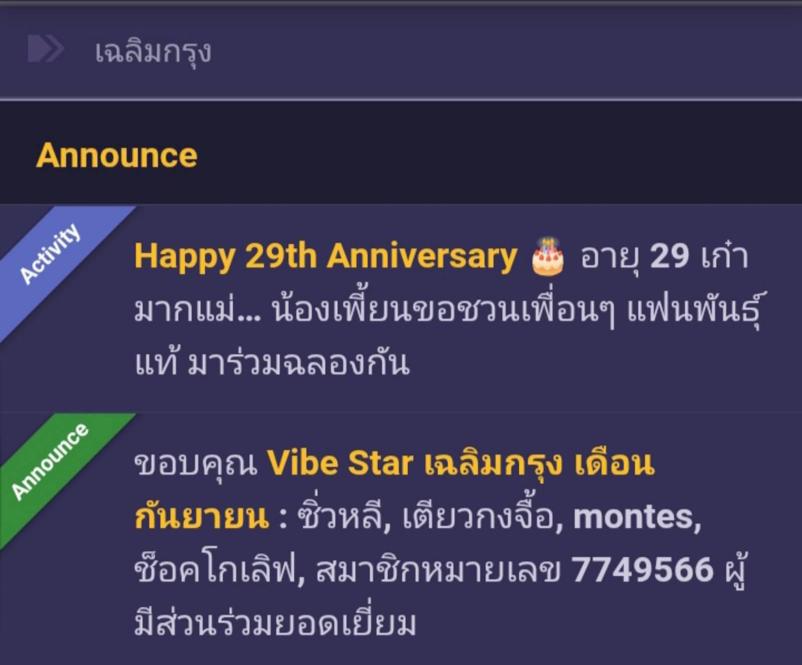 ขอบคุณ Vibe Star เฉลิมกรุง เดือน กันยายน : ซิ่วหลี, เตียวกงจื้อ, montes, ช็อคโกเลิฟ, สมาชิกหมายเลข 7749566 ผู้ มีส่วนร่วมยอดเยี่ยม