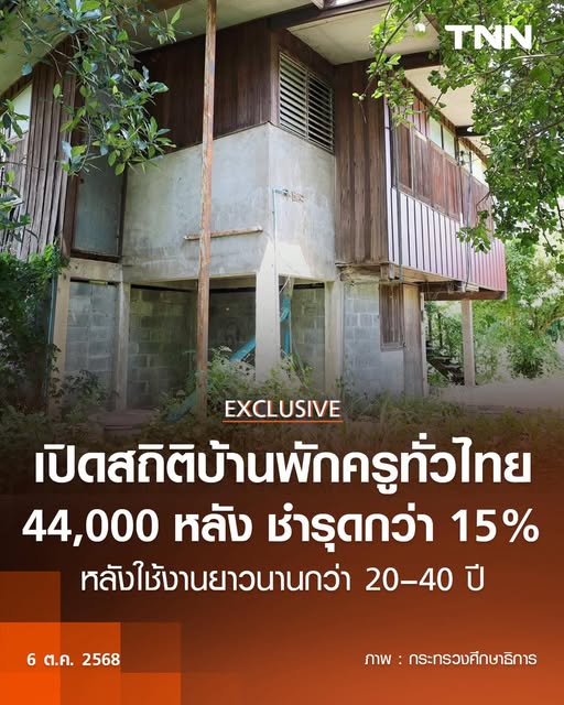 เปิดสถิติบ้านพักครูทั่วไทย 44,000 หลัง ชำรุดกว่า 15% หลังใช้งานยาวนานกว่า 20–40 ปี