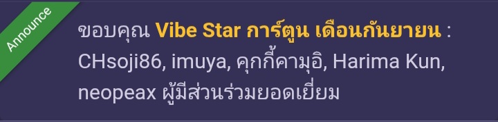ขอบคุณ Vibe Star เฉลิมกรุง เดือน กันยายน : ซิ่วหลี, เตียวกงจื้อ, montes, ช็อคโกเลิฟ, สมาชิกหมายเลข 7749566 ผู้ มีส่วนร่วมยอดเยี่ยม มีมากกว่านี้ ต้องกด F5 ไปเรื่อยๆ ใครได้สมาชิกส่วนร่วมยอดเยี่ยม จะ
