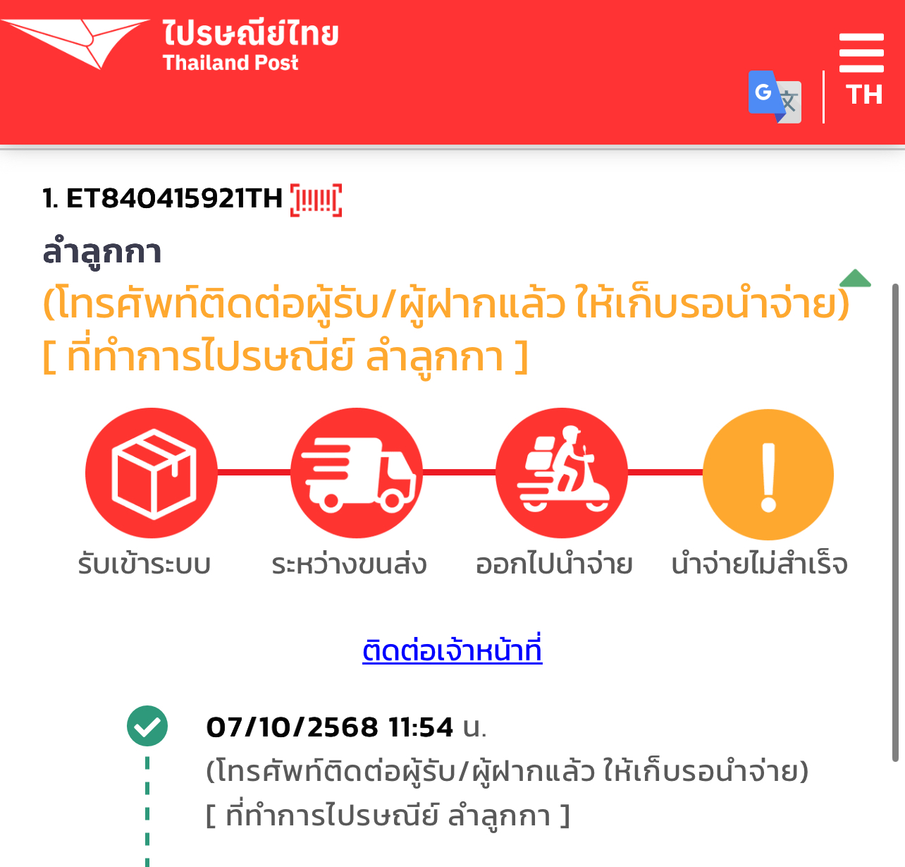 สถานะไปรษณีย์ไทยแบบนี้หมายถึงอะไรคะ