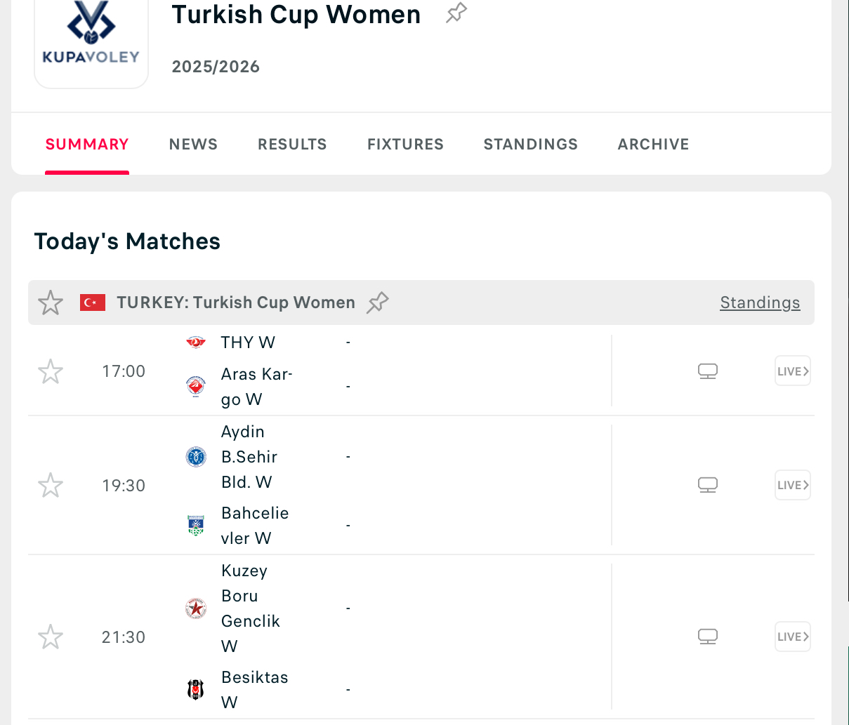 วันนี้แข่งTurkish Cup🇹🇷วันแรก THY , Aras Kargo , Aydin , Bahcelievler , Beşiktaş , Kuzeyboru