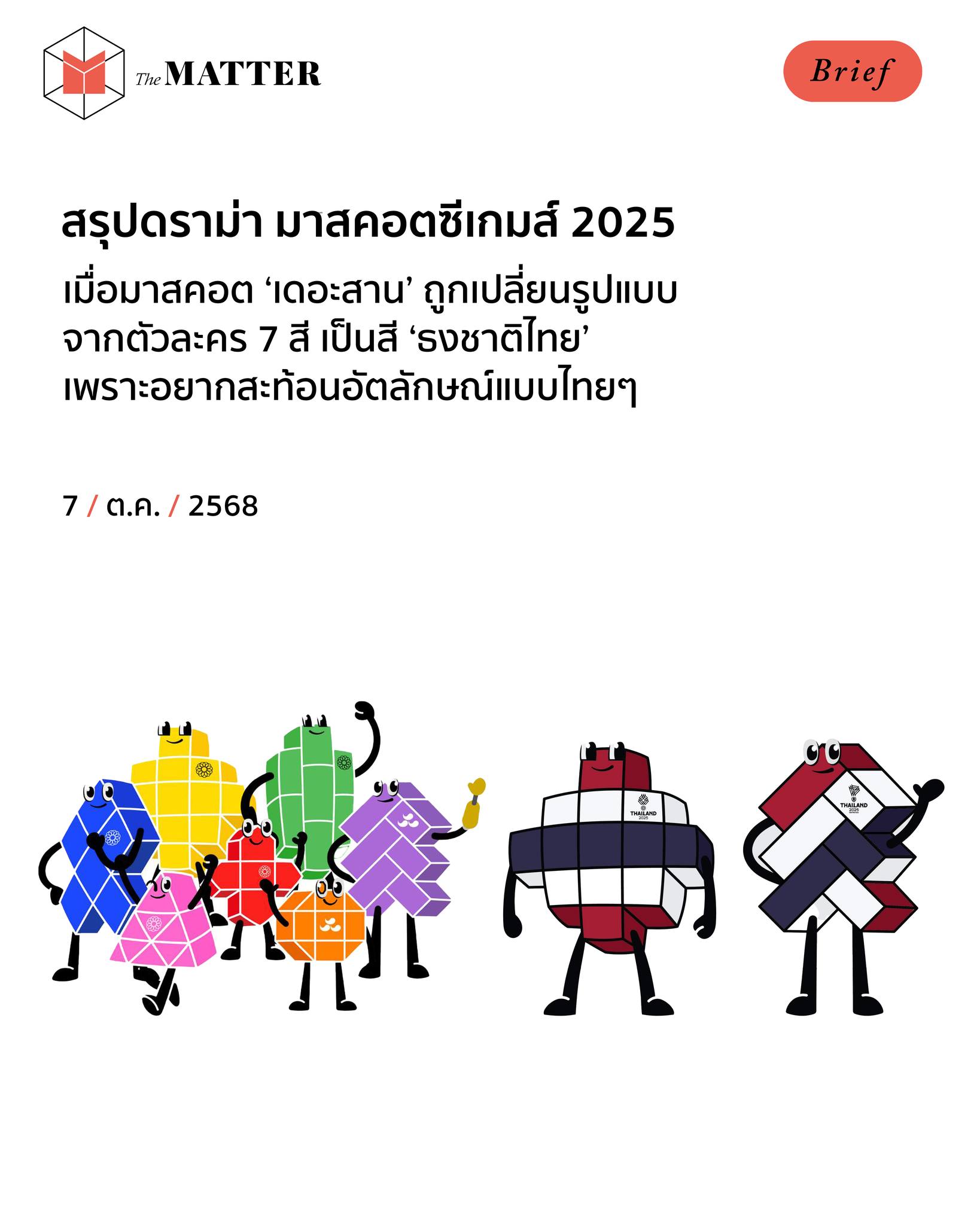 สรุปดราม่า มาสคอตซีเกมส์ 2025 เมื่อมาสคอต ‘เดอะสาน’ ถูกเปลี่ยนรูปแบบ จากตัวละคร 7 สี เป็นสี ‘ธงชาติไทย’ เพราะอยากสะท้อนอัตลักษณ์แบบไทยๆ