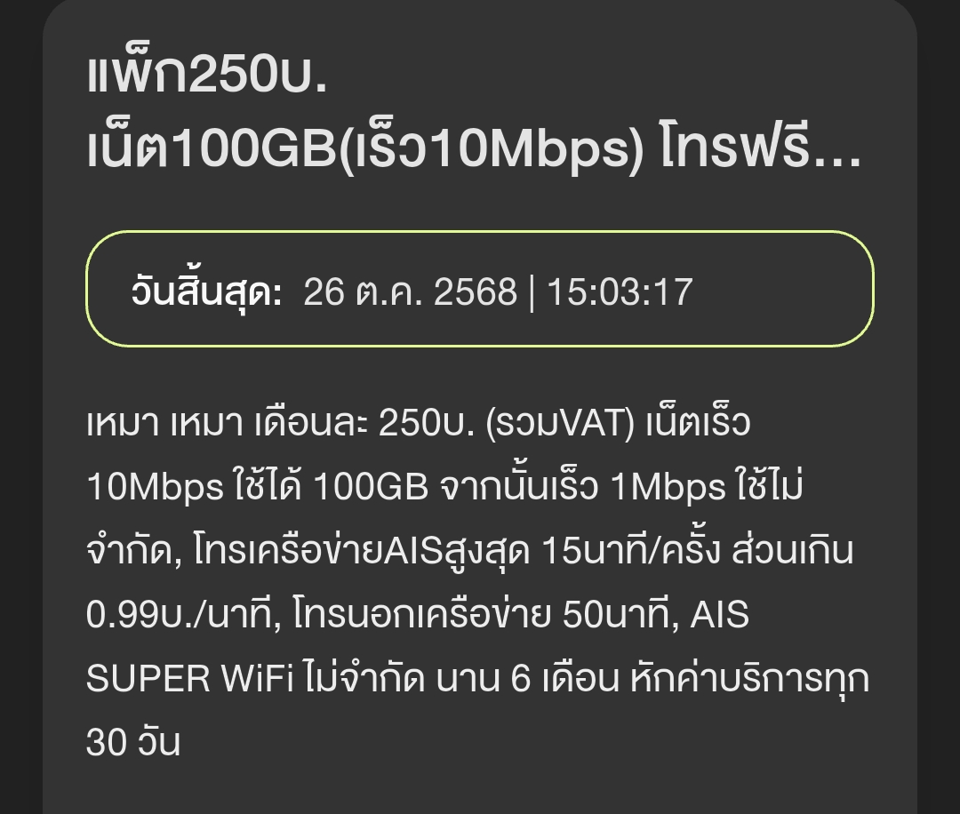 เติมเงินเพื่อตัดแพ็กเกจ Ais แต่ ไปตัดเงินที่ใช้เน็ตแทน