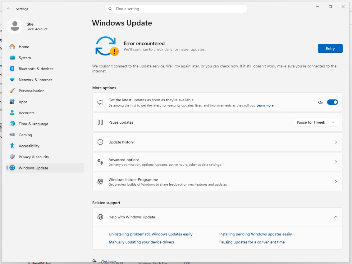 We couldn't connect to the update service. make sure you're connected to the Internet. ใน วิน 11 ครับ
