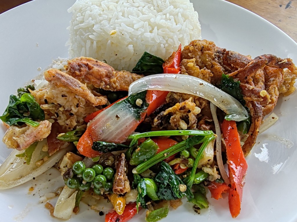 ปูนิ่มพริกไทยดำ จานนี้ดีเลยครับ 60 บาท เองนะสู