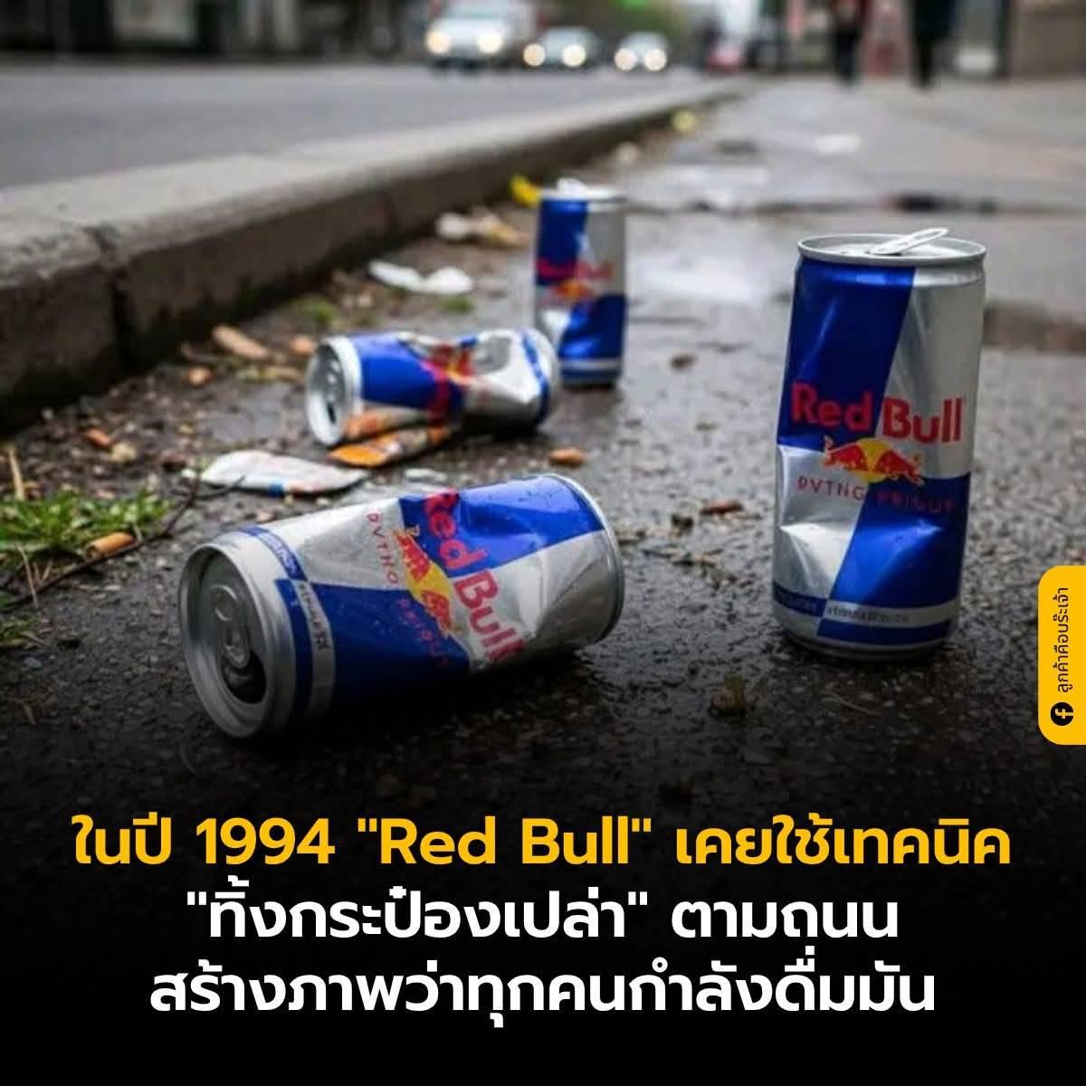 ในปี 1994 "Red Bull" เคยใช้เทคนิค "ทิ้งกระป๋องเปล่า" ตามถนน สร้างภาพว่าทุกคนกำลังดื่มมัน 🍻