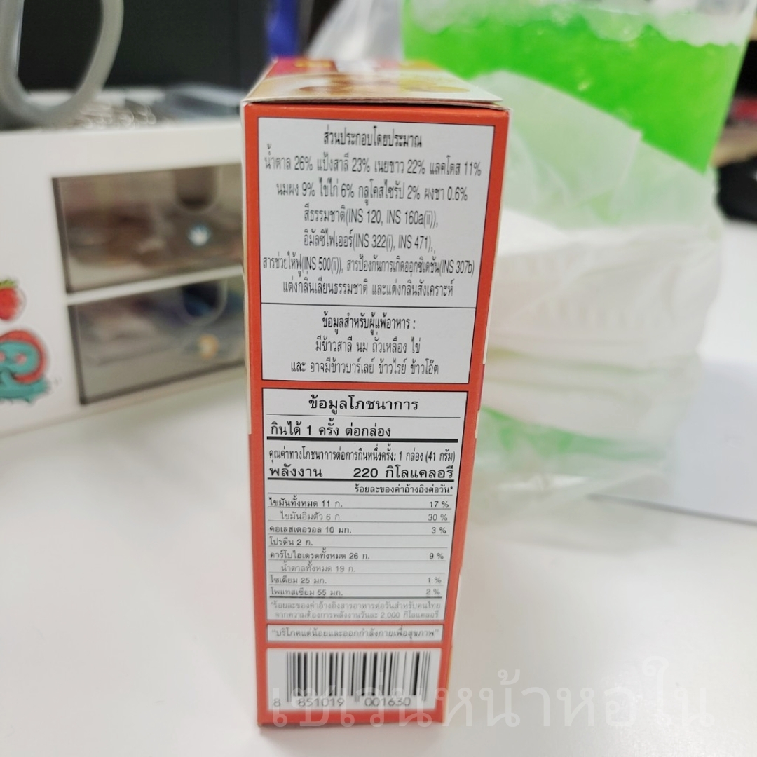 กล่องสีส้มชาไทยสะดุดตา กล่องนี้เป็นกล่องเล็กๆ ขนาด41กรัม ราคา 16 บาท ครับ