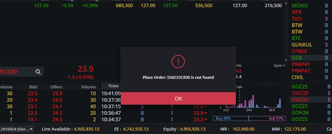ปัญหา Click2win ไม่สามารถเปิดOrder ของ Option ท่านใดพอช่วยได้มั้ยครับ แจ้งเจ้าหน้าที่แล้วแต่ยังไม่แก้ให้จะเดือนแล้ว