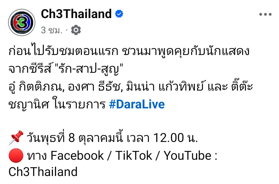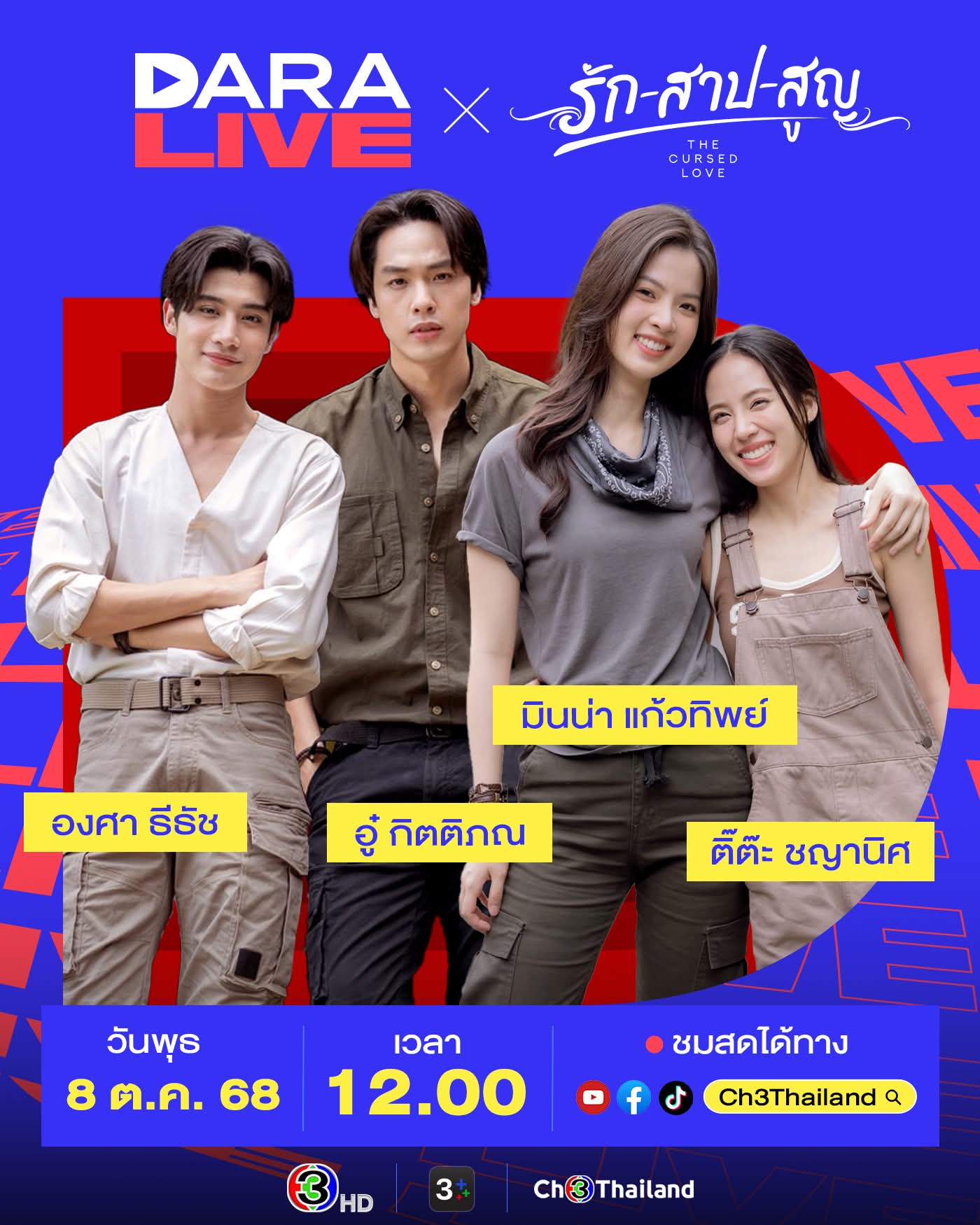 🧐 Dara Live X รัก-สาป-สูญ 🥳 พูดคุยกับนักแสดงจากซีรีส์ "รัก-สาป-สูญ" 📌 วันพุธ ที่ 8 ต.ค. 68 เวลา 12.00 น.