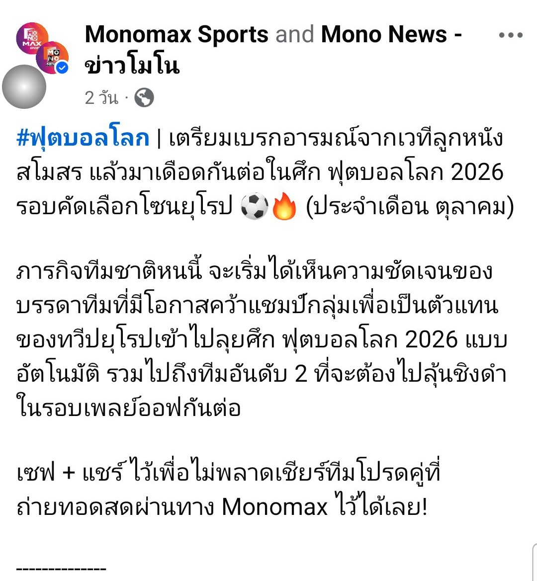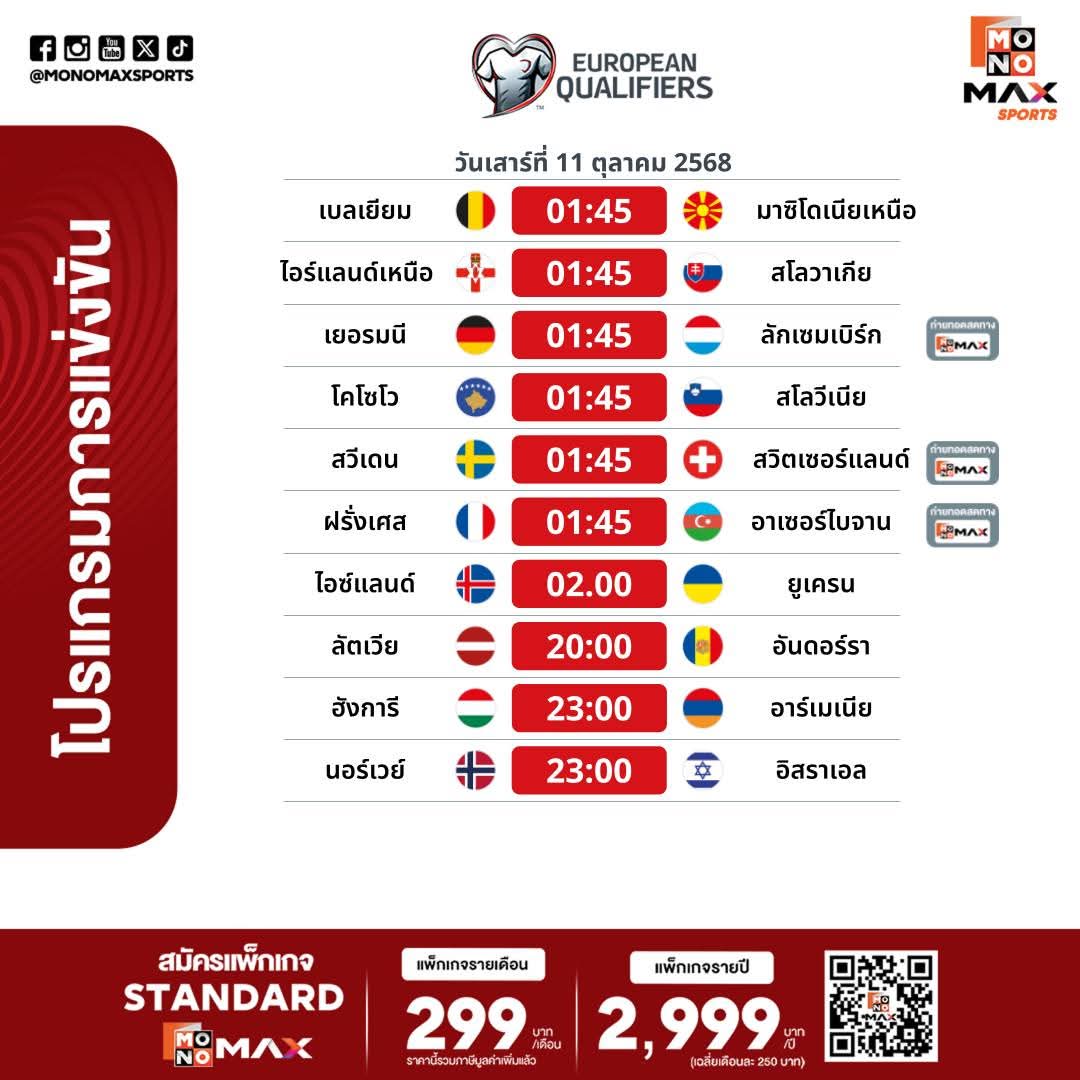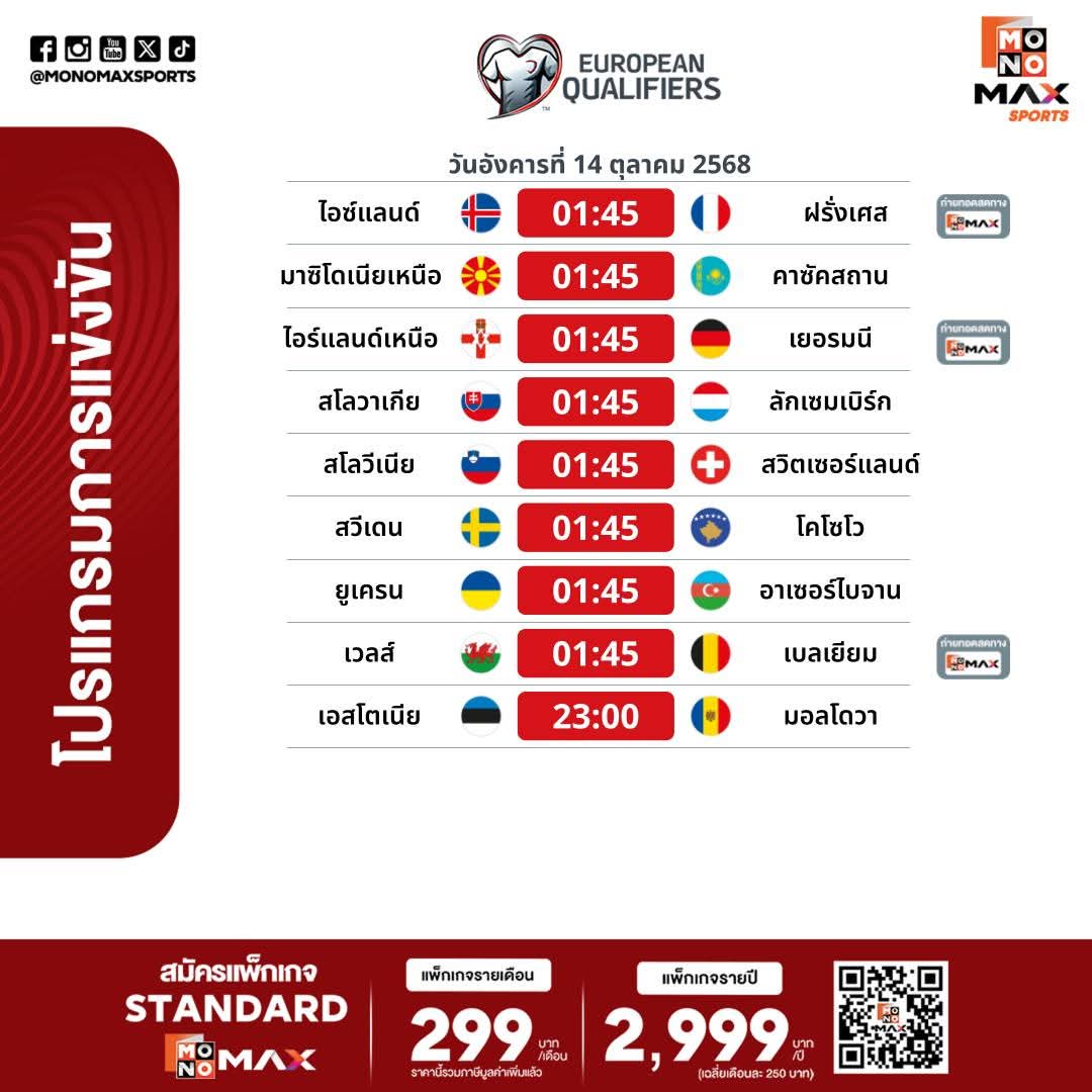 Monomax เพิ่ม UEFA European Qualifiers “ฟุตบอลโลก 2026 รอบคัดเลือกโซนยุโรป” ในราคาเดิม AIS 199 หรือ Monomax 299 บาท