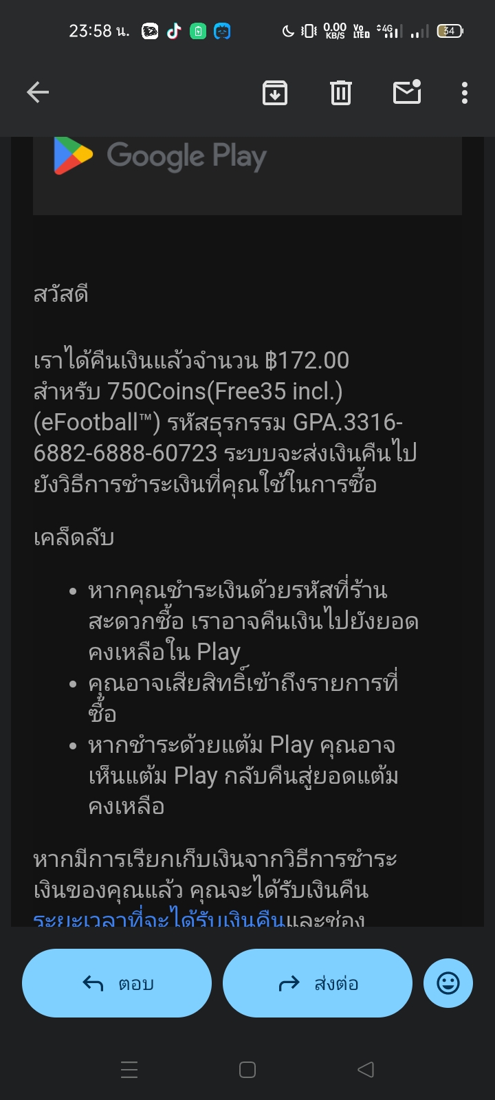 ผมได้ทำการขอเงินคืนจากกู้เกิลเพล ทำรายการเสร็จแล้วแต่เงินไม่เข้าในระบบใดๆทั้งสิน ผมใช้พร้อมเพย์ของธนาคารออมสินจ่าย