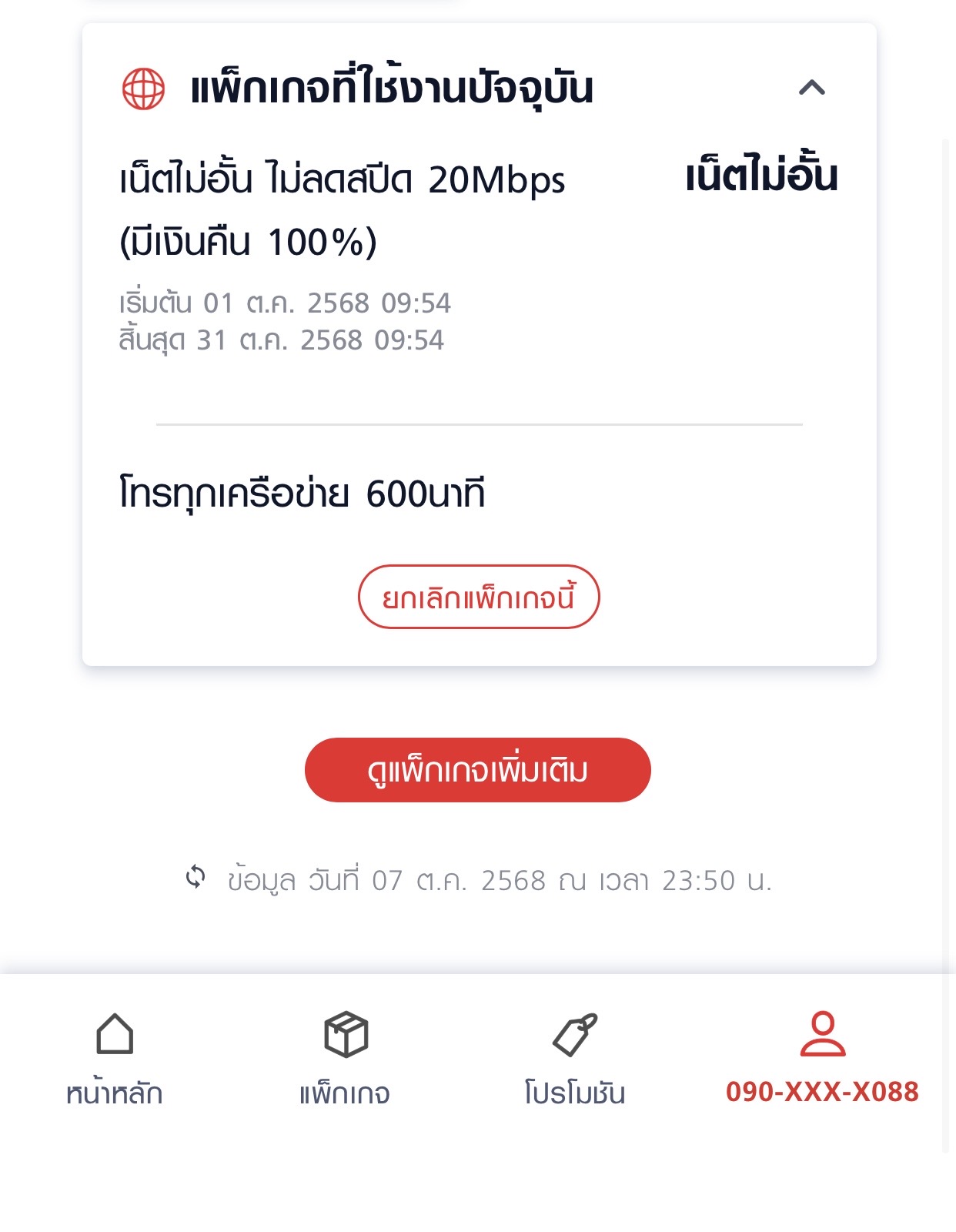 ปัญหาที่เจอเลยคือเติมเงินเข้าไปแล้วอยู่ๆเงินก็หายทั้งๆที่มีเน็ตไม่อั้น ไม่ลด 20Mbps / โทรฟรีทุกเครือข่าย 600 นาที