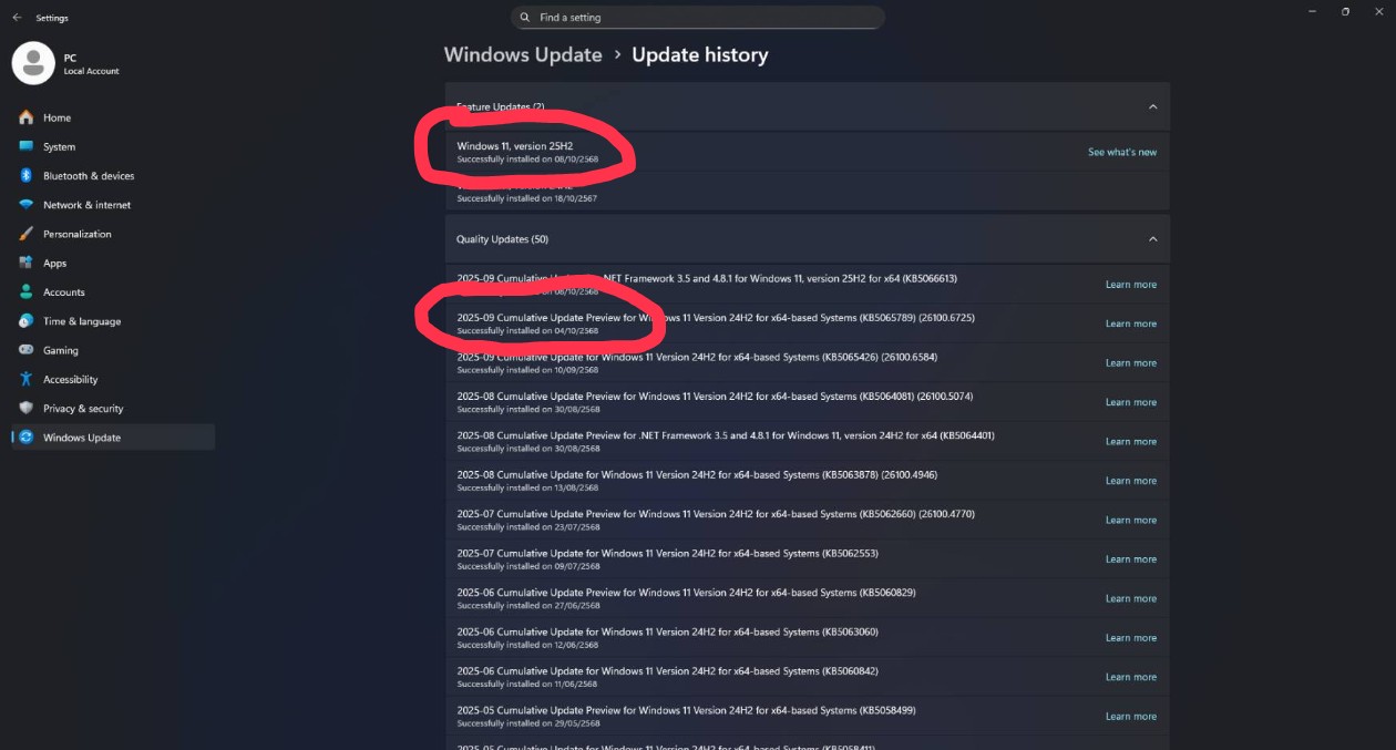 8/10/2025 เช้านี้ พึ่งได้อัพ 25H2 ตอนโหลดไฟล์ ใช้เวลาไม่ถึง 1 นาที + ติดตั้ง ก็ใช้เวลาไม่ถึง 1 นาที