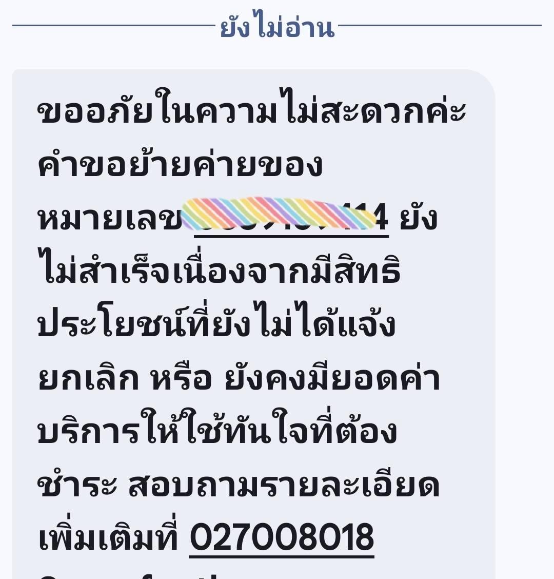 เบอร์เติมเงินของทรู. ผมต้องการย้ายค่าย. ทำไมย้ายไม่ได้