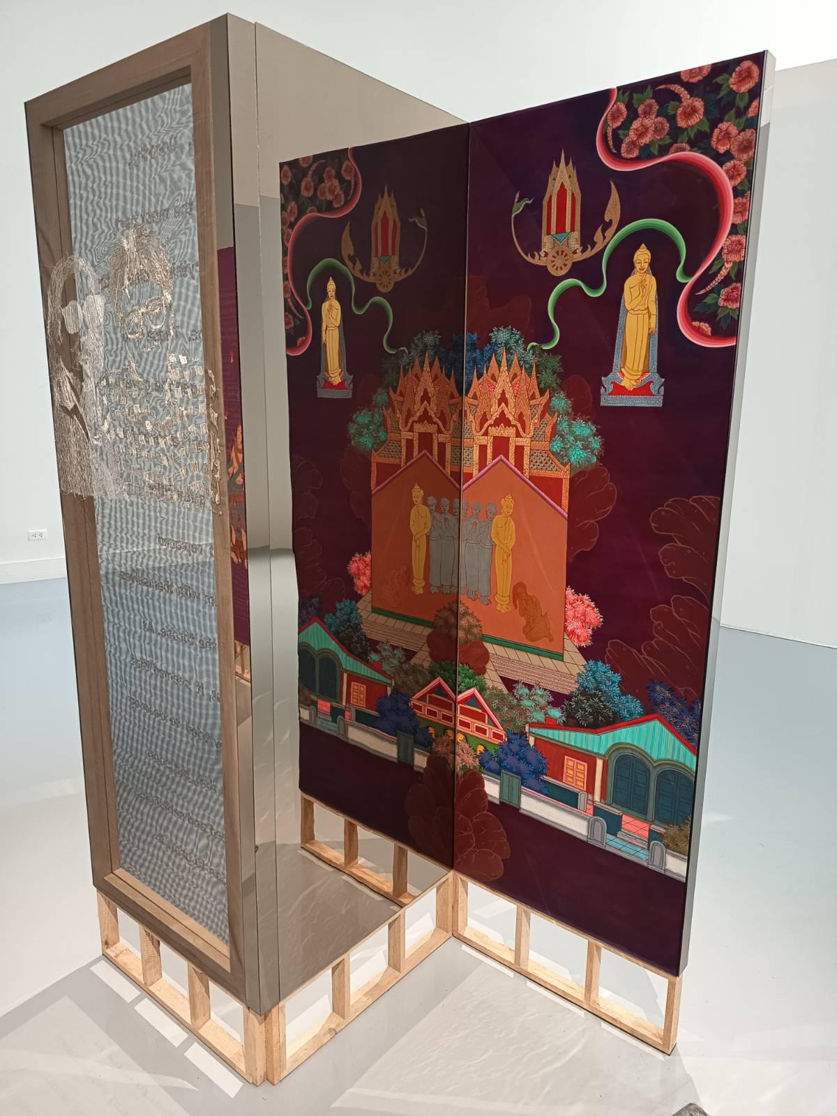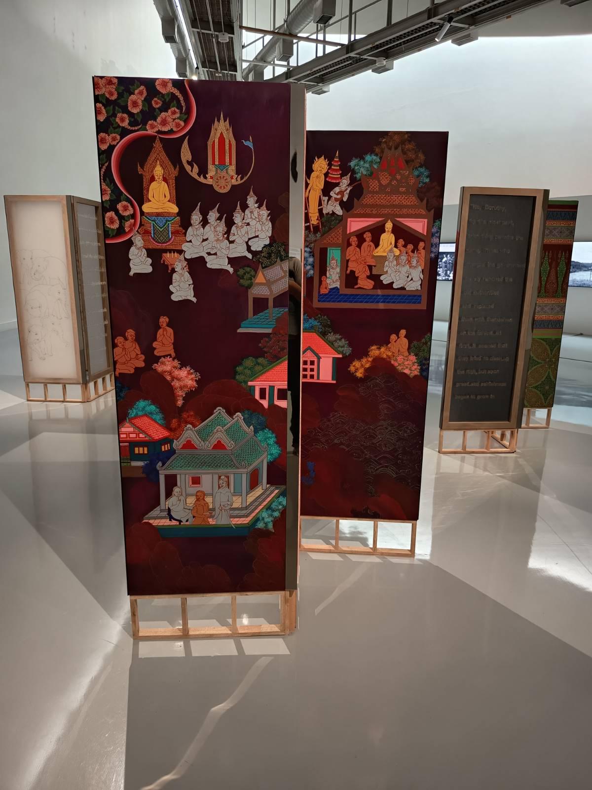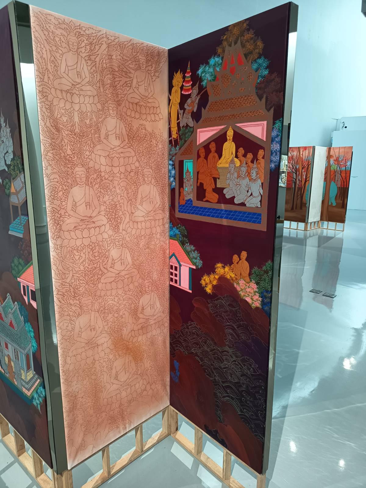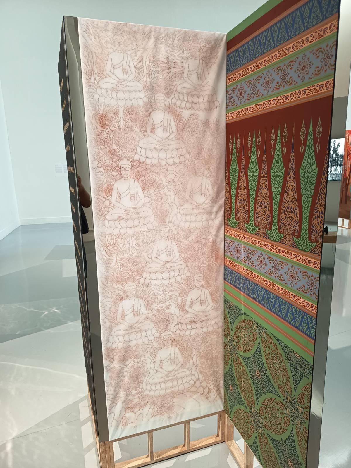 เป็นการแสดง ภาพพิมพ์ลายบนผ้าไหม ในวันสงกรานต์ครับ