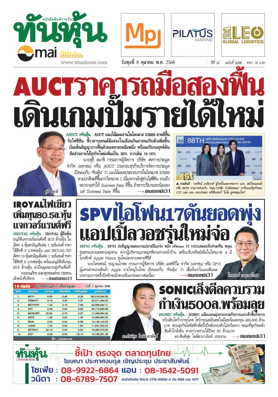 กรอบการลงทุน วันที่ 8 ตุลาคม 2025