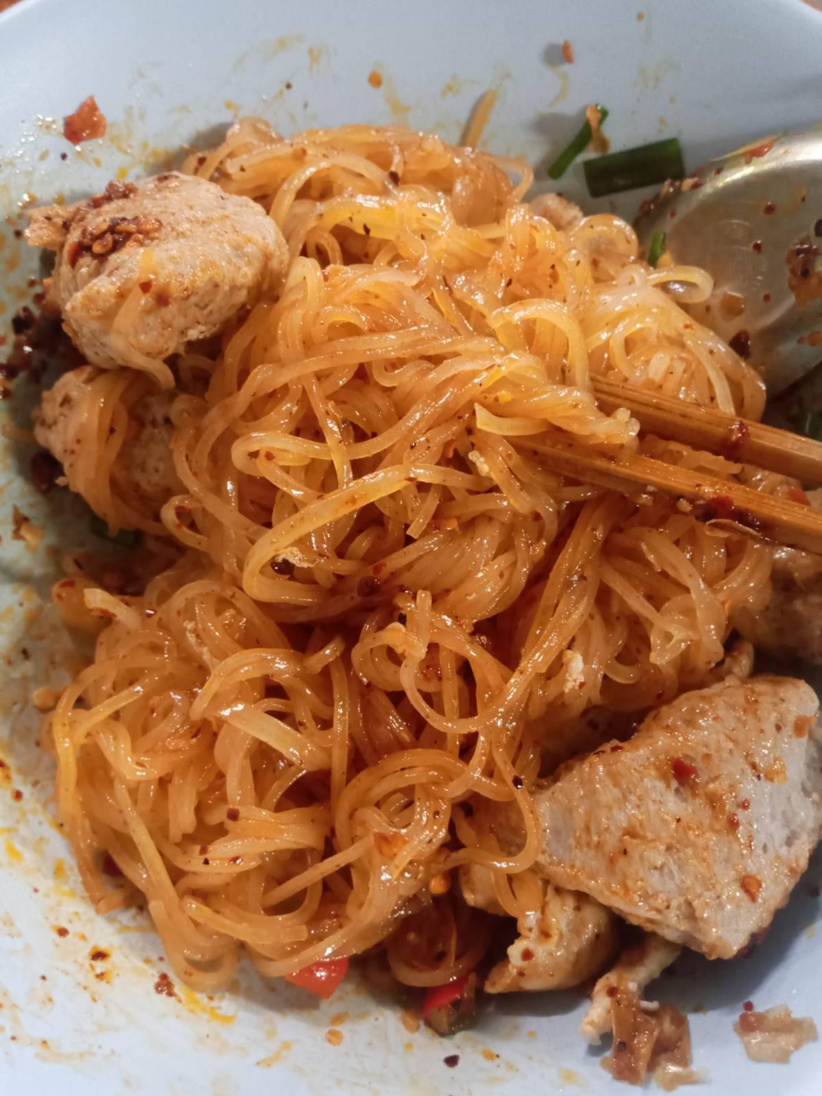 เส้นเล็กแห้ง คลุกน้ำมันกระเทียมเจียว กากหมู