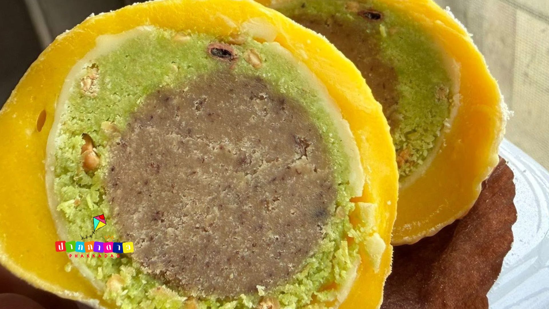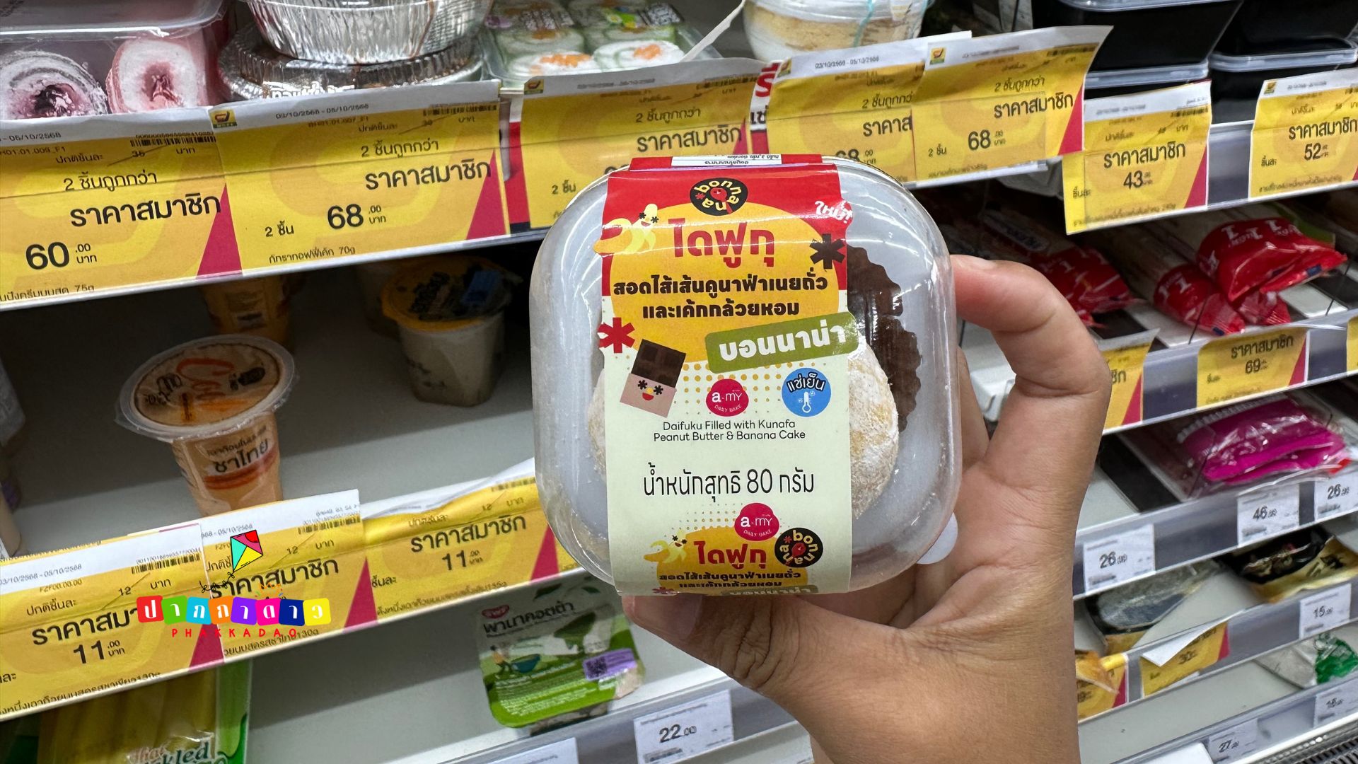 ✨ หน้าตาเหมือนไดฟูกุญี่ปุ่น แต่ข้างในซ่อนความเป็นไทย-ฟิวชั่นไว้เต็มๆ ด้านนอกเป็นแป้งนุ่มๆ ไส้ด้านในมีเค้กกล้วยหอมเนื้อแน่น หอมกล้วย