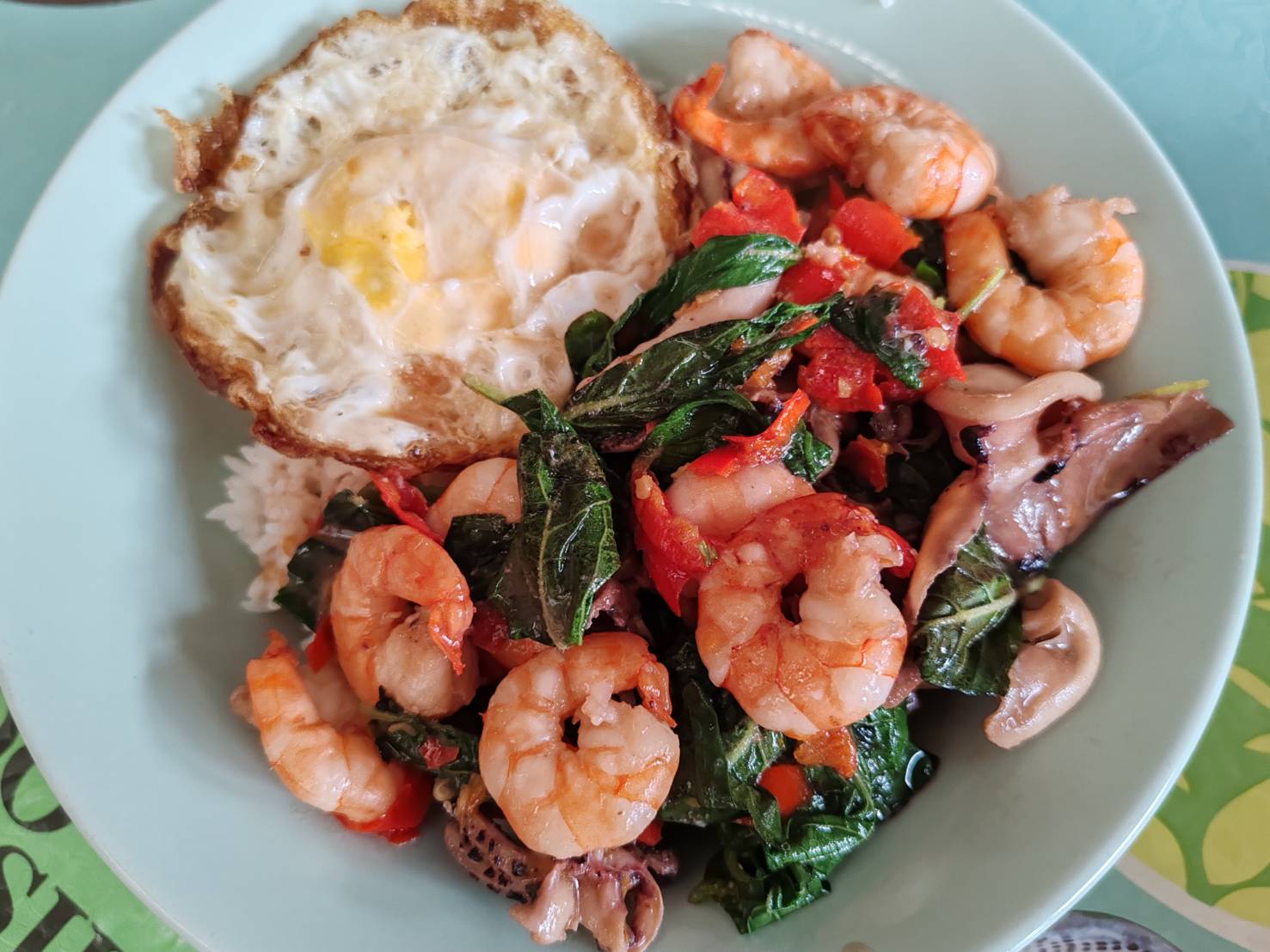 เมนู เคลียร์ตู้เย็น วันหยุด กะเพรากุ้ง 3 ชั้น ต้มจับฉ่าย ฉบับไม่ใส่ผงชูรส
