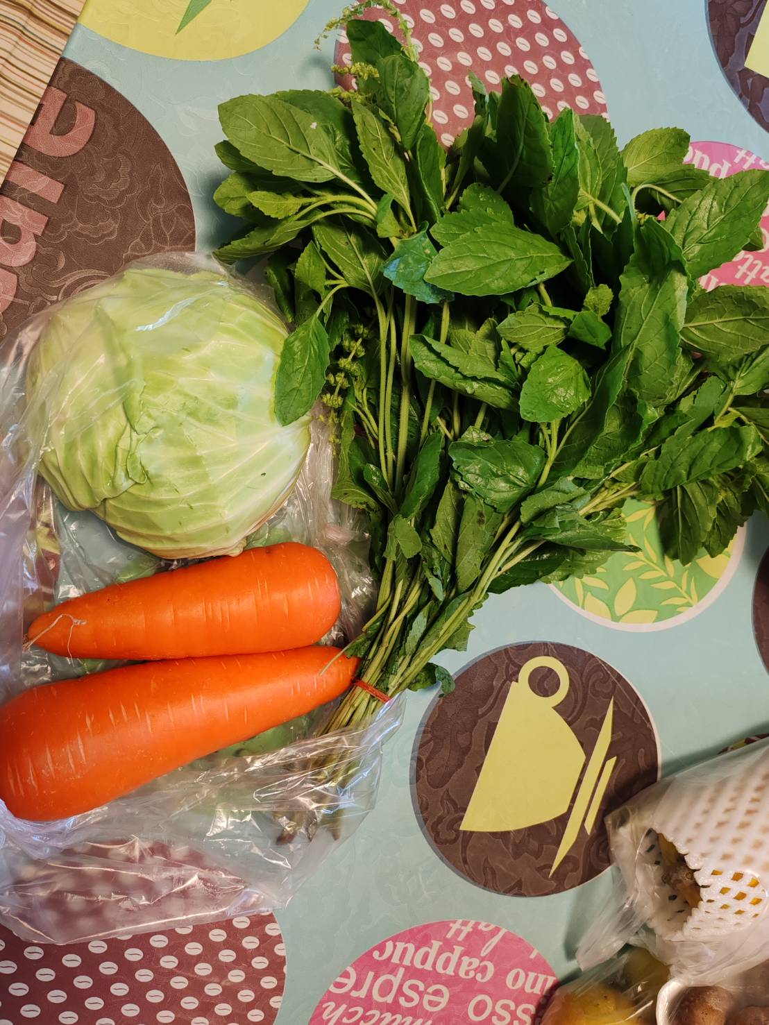 ไปเดินตลาดก็ซื้อผัก มาต้มจับฉ่าย เจ๊อยากกิน ได้อันนี้มาด้วย 3 เกลอ 3อย่างนี้ 20 บาทเองนะ เดี๋ยวผัดกะเพราด้วย ง่ายดี