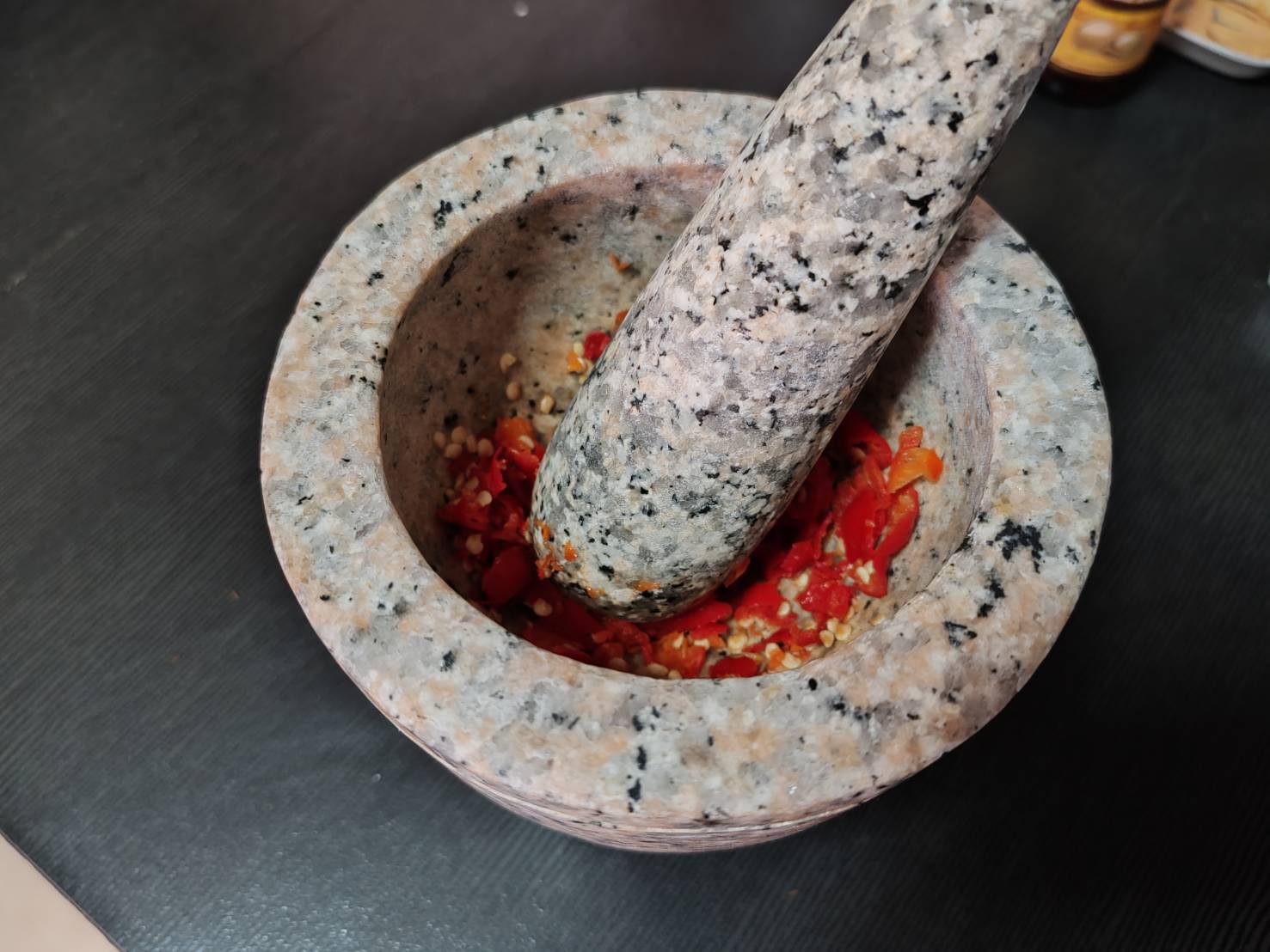 กะเพราจัดการแช่ล้างให้เรียบร้อย ตำพริก กระเทียม พริกไทยนี่บดมือเอาครับ ขี้เกียจตำ55