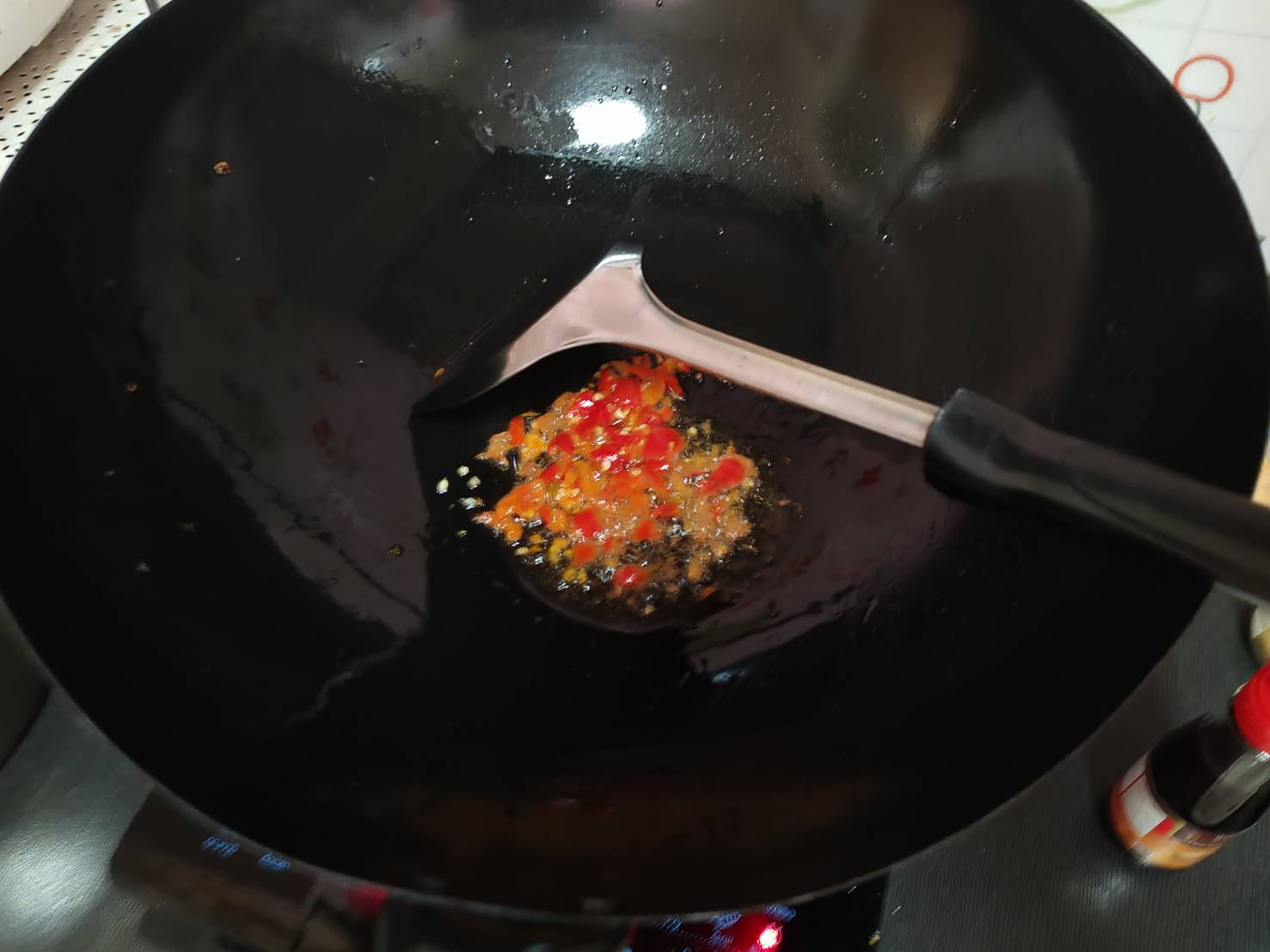 หิวแล้วววว ใส่พริก ตามด้วยกระเทียม ใส่ลงไปผัดให้ หอม ระวังจาม 55 ใส่พริกไทย ตามไป