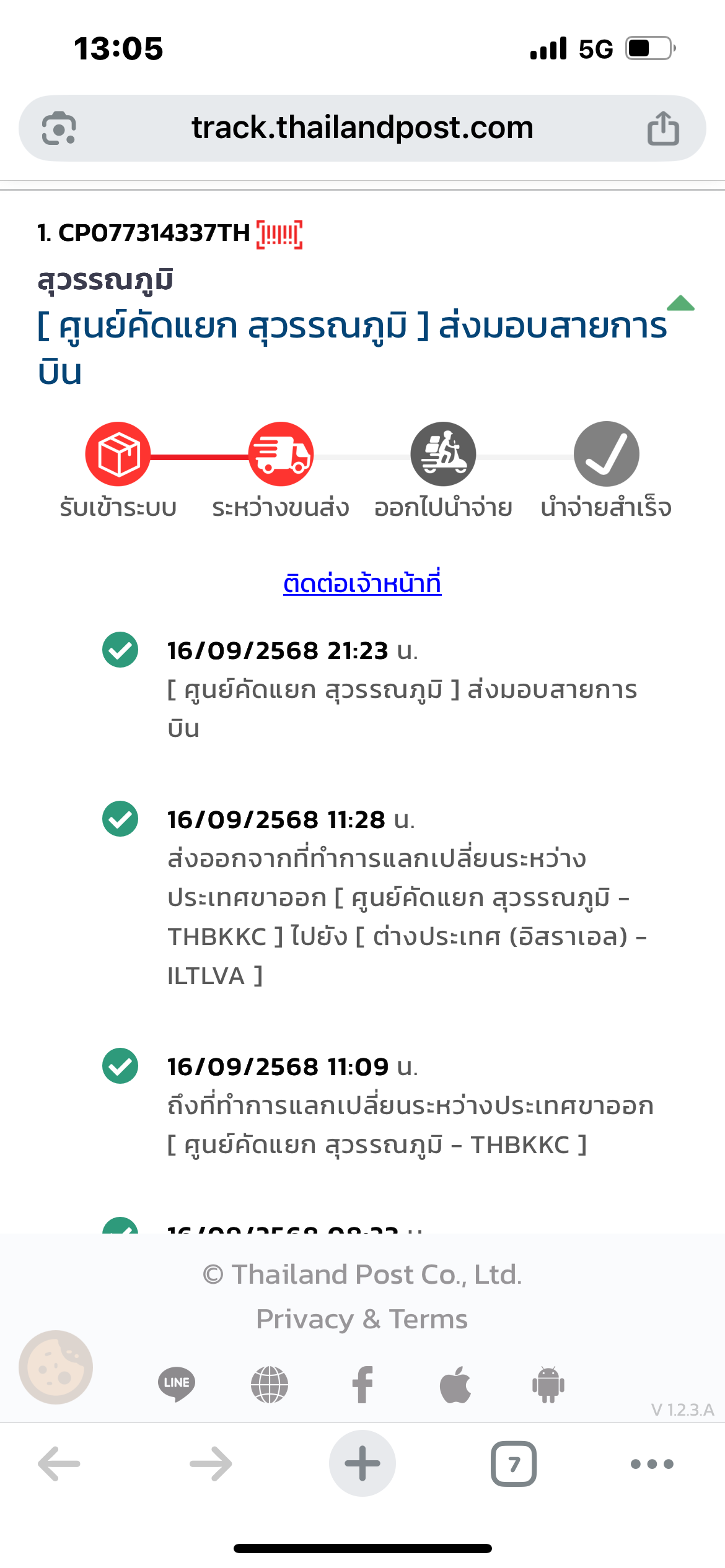 ส่งของกับไปรษณีย์ไทยตั้ง15/09/68 ของออกจากสุวรรณภูมิตั้ง16/09/68 แร้วอยากทราบว่าตอนนี้ของถึงไหนแร้วค่ะ