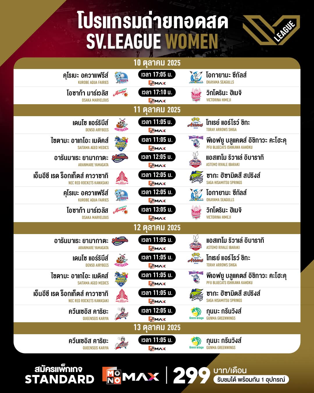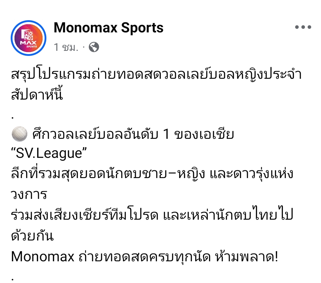 🔎 โปรแกรมถ่ายทอดสดวอลเลย์ SV.League WOMEN สัปดาห์นี้ 🏐