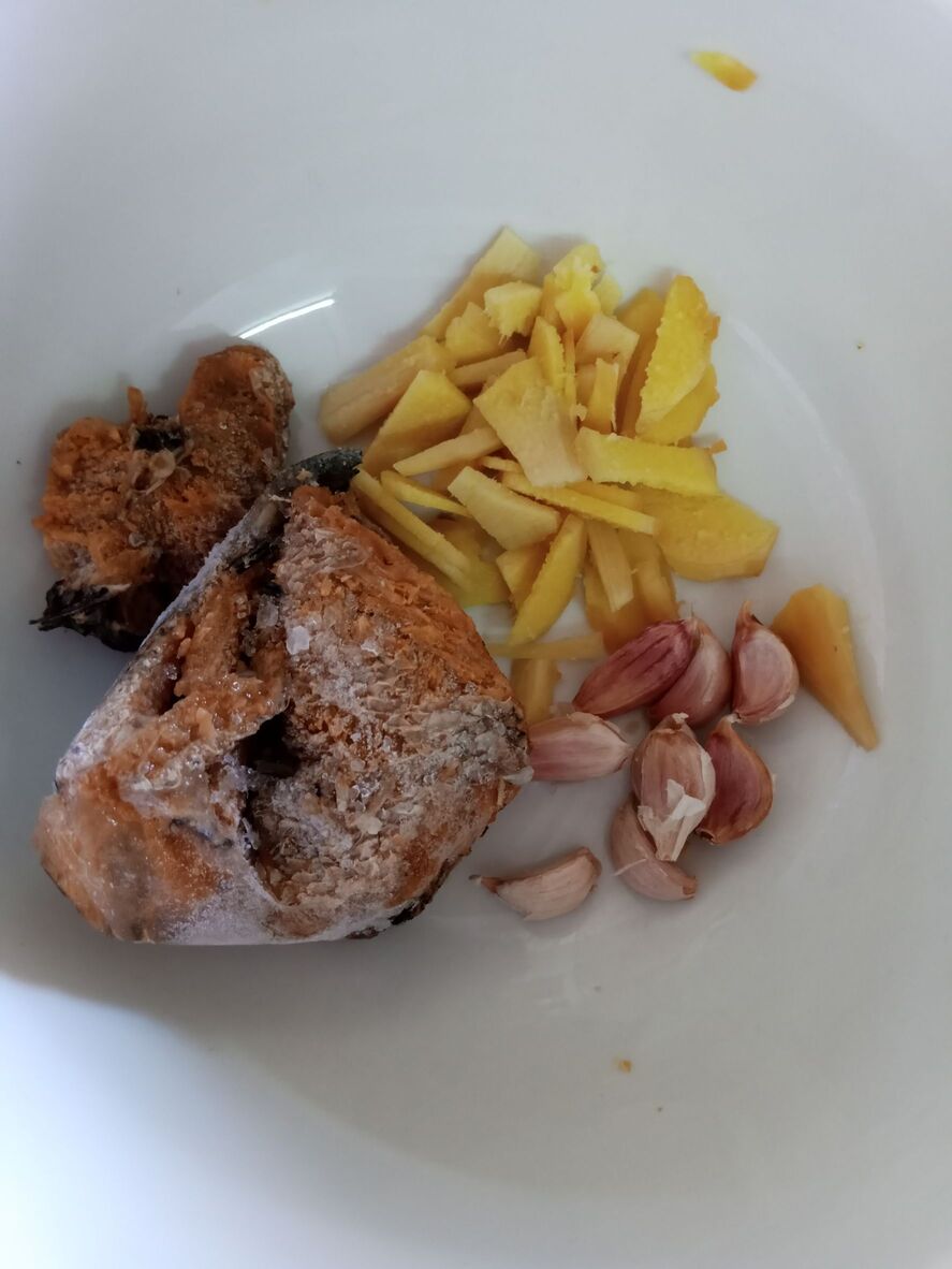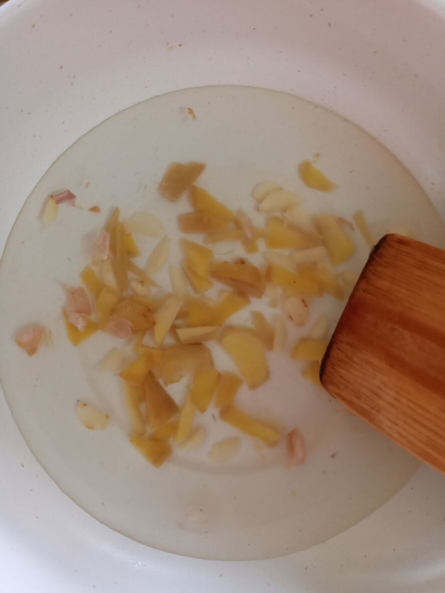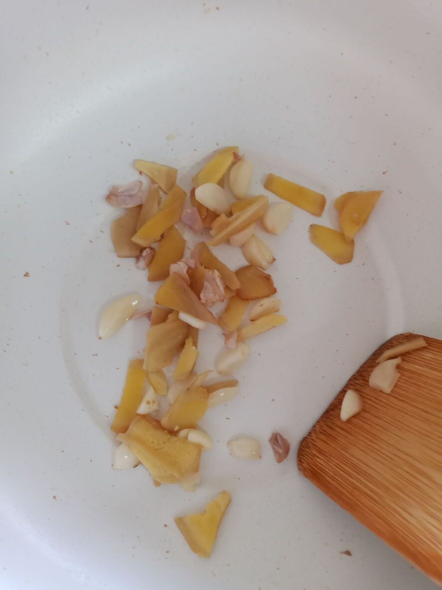 ผัดขิงกับกระเทียมในน้ำมันนิดหน่อย
