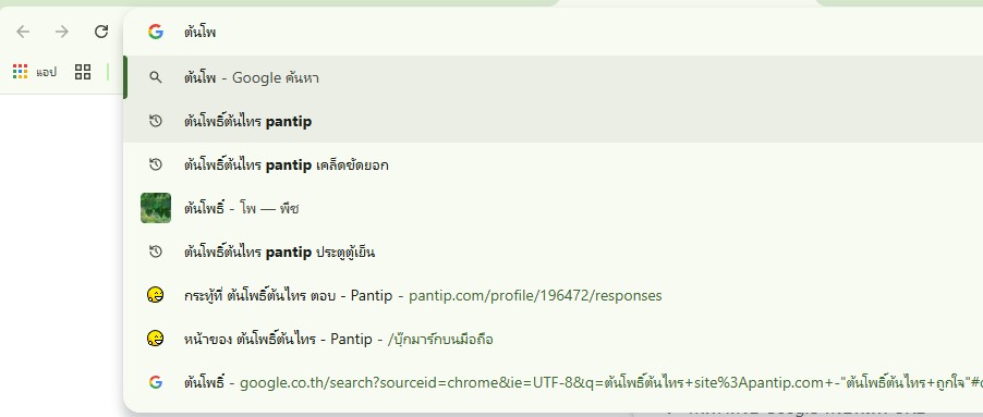 และพอค้นบ่อยๆแล้ว พิมพ์แค่ไม่กี่ตัว ระบบจะขึ้นข้อความเต็ม ต้นโพธิ์ต้นไทร pantip มาให้เลย เราก็แค่พิมพ์ต่อท้ายว่าเรื่องอะไรเท่านั้นเอง