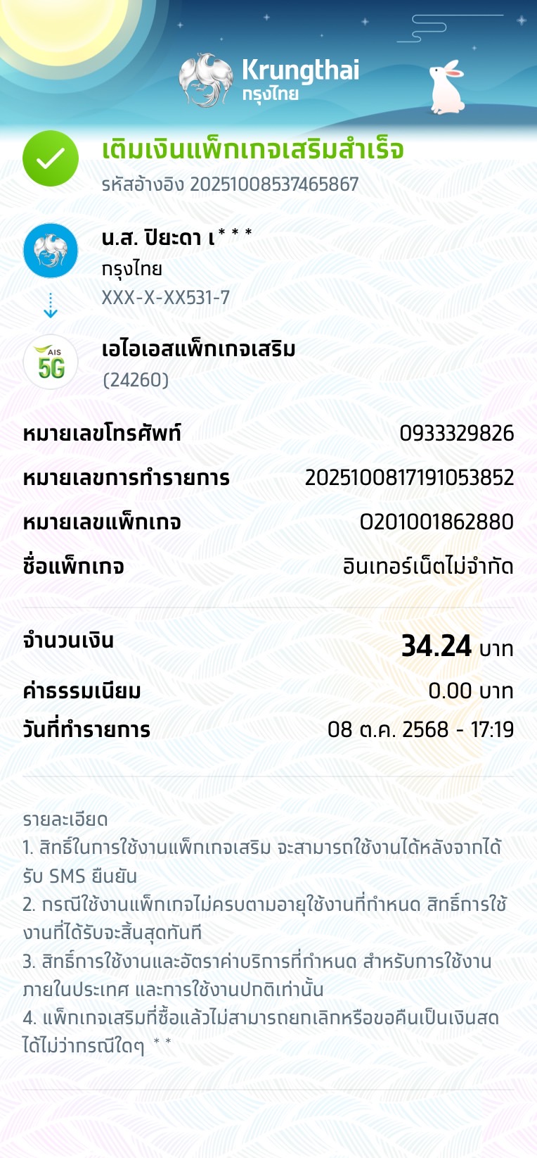 ต้องการเปลี่ยนจากรายเดือนเป็นแบบเติมเงินais