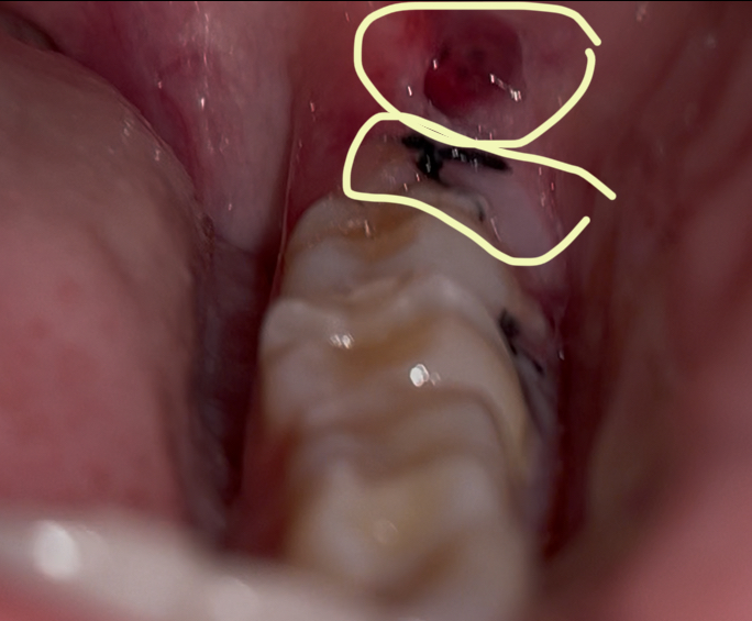 ผ่าฟันคุดครบ1วัน มีสีแดงๆ (วงด้านบน) และ สีขาวเคลือบๆไหม แบบนี้ปกติไหมคะ