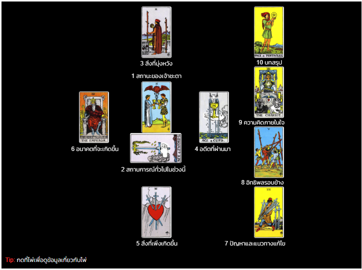 รบกวนแปลความหมายไพ่ยิปซี 10 ใบ แบบ Celtic Cross ให้หน่อยครับ